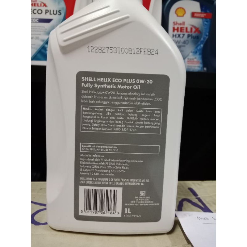 Shell HELIX ECO PLUS 0W-20 Fully Synthetic Motor Oil API SN PLUS, API SN, ILSAC GF-5 1L