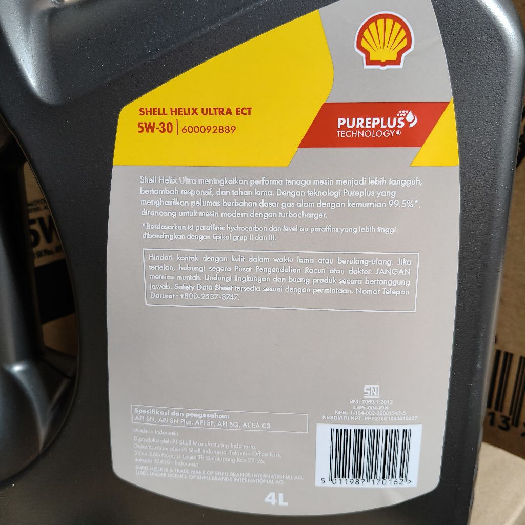 NEW Shell Helix Ultra ECT 5W-30 SP/SQ Full Syn Bensin/Diesel 4L 100% Original