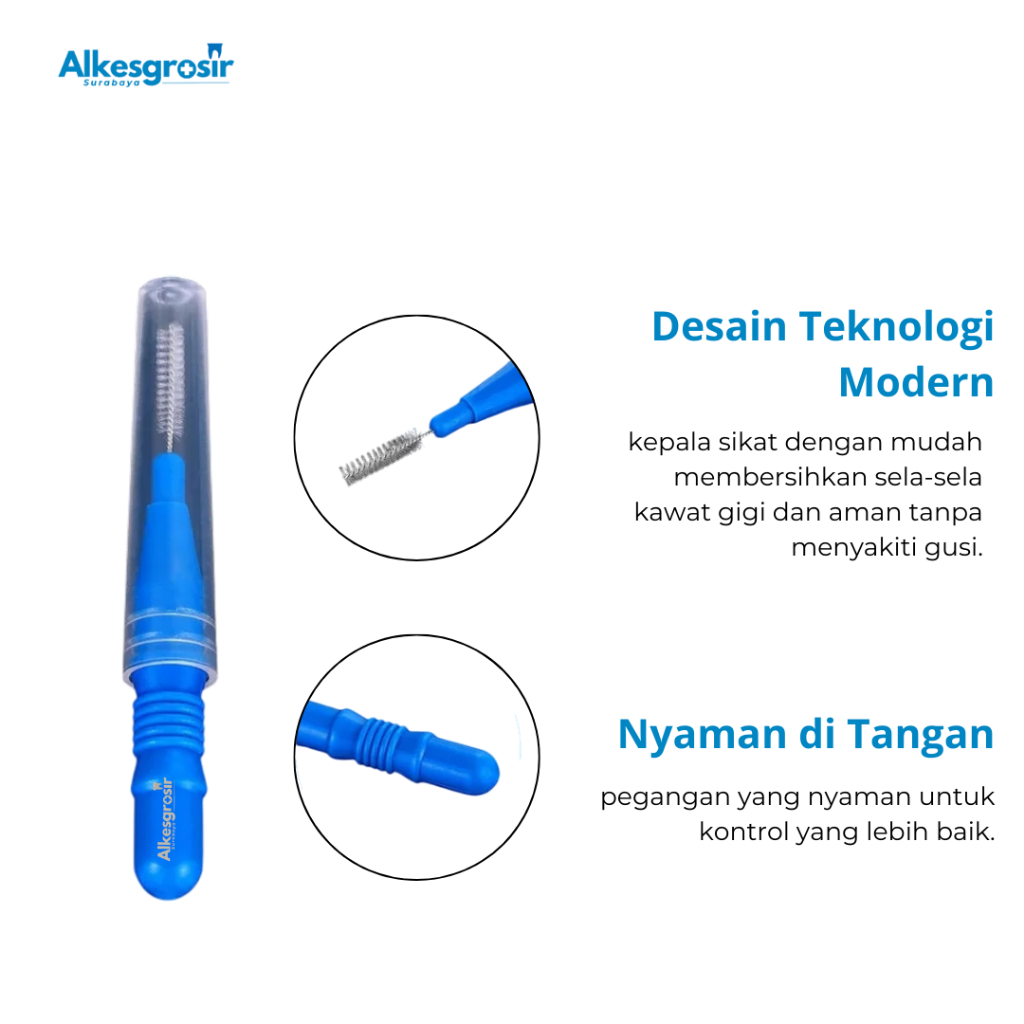 Alkesgrosirsurabaya Interdental Brush Sikat Gigi Sela Kawat Behel Ortho Dental Tipe Lurus Bonus Tutup 1pcs