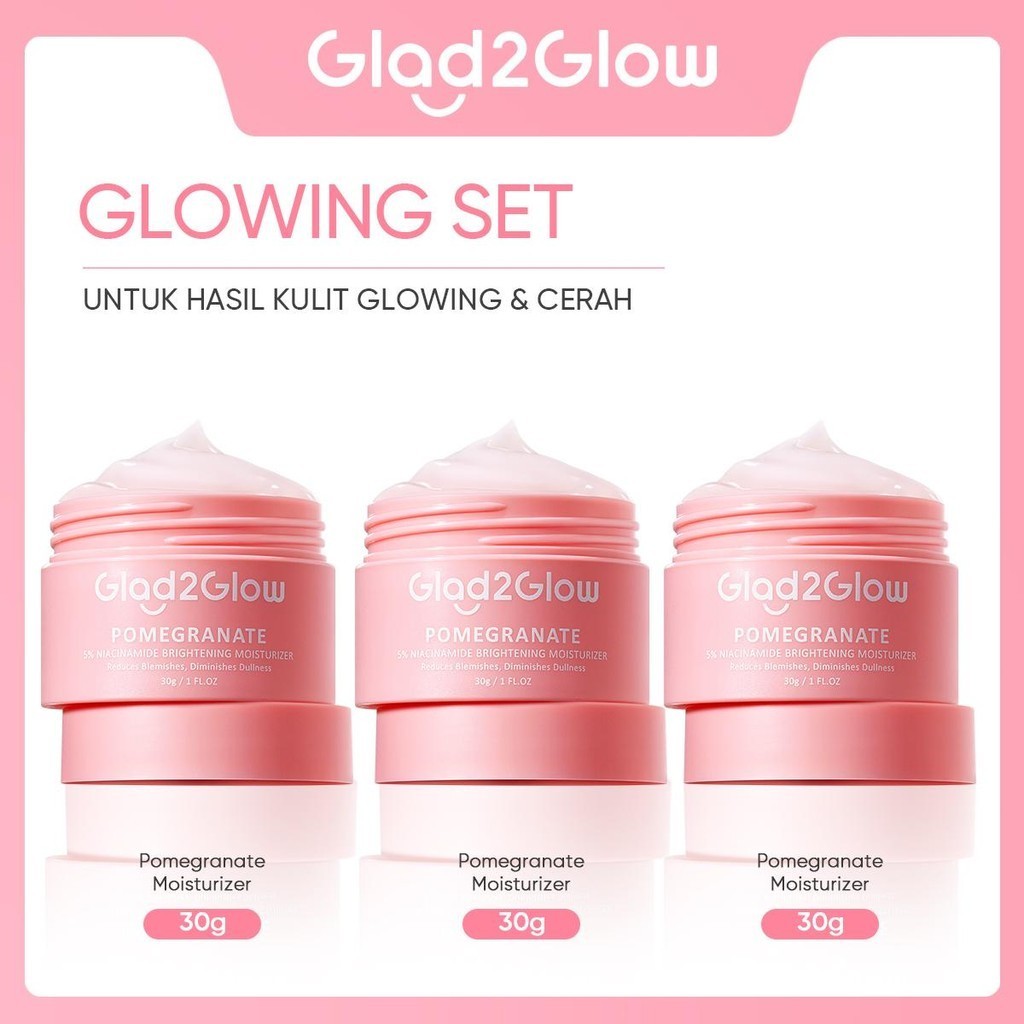 [ 100%ORI ]Paket Glad2Glow Moisturizer 3pcs Skincare Set -ACNE KIT GLOWING KIT Dark Spot Gift Set Berjerawat Ceramide Exfoliating Mencerahkan Pencerah Wajah Arbutin Hitam Niacinamide Cooling Komedo Kusam Pha Vitamin Acid Kering G2G