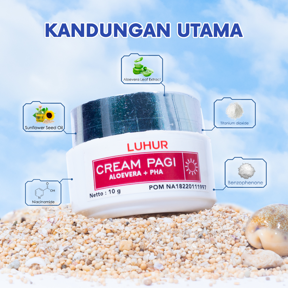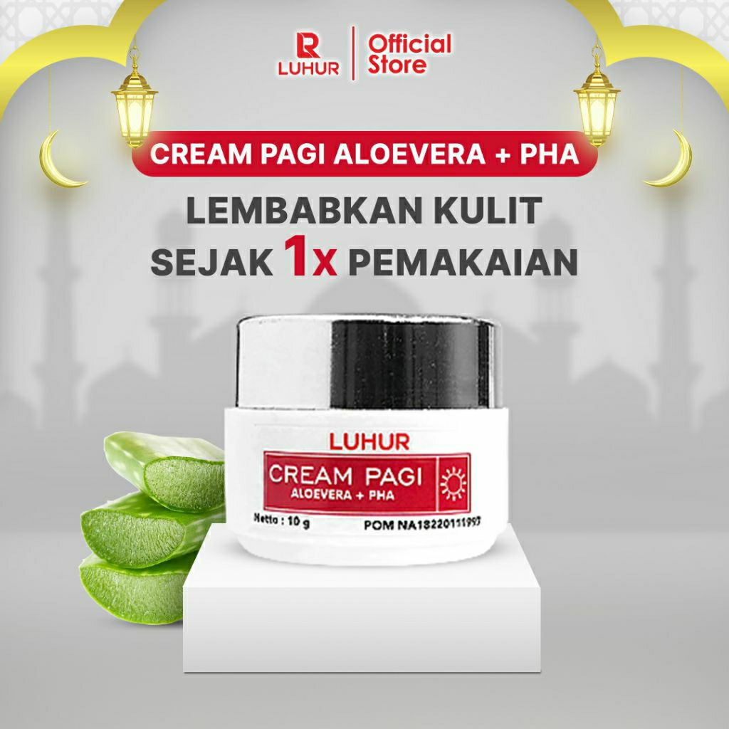 Cream Pagi Plus Whitening Aloe Vera | by Luhur Skincare BPOM & Halal | Day Cream dengan Sunscreen Agent, Moisturizing, Whitening Melembapkan, Mencerahkan Wajah, Aman dan Cocok untuk Semua Jenis Kulit