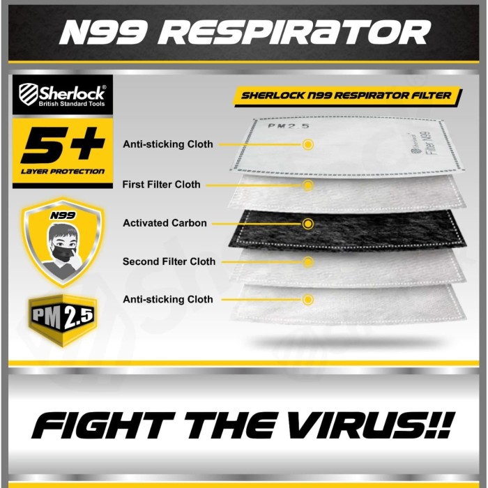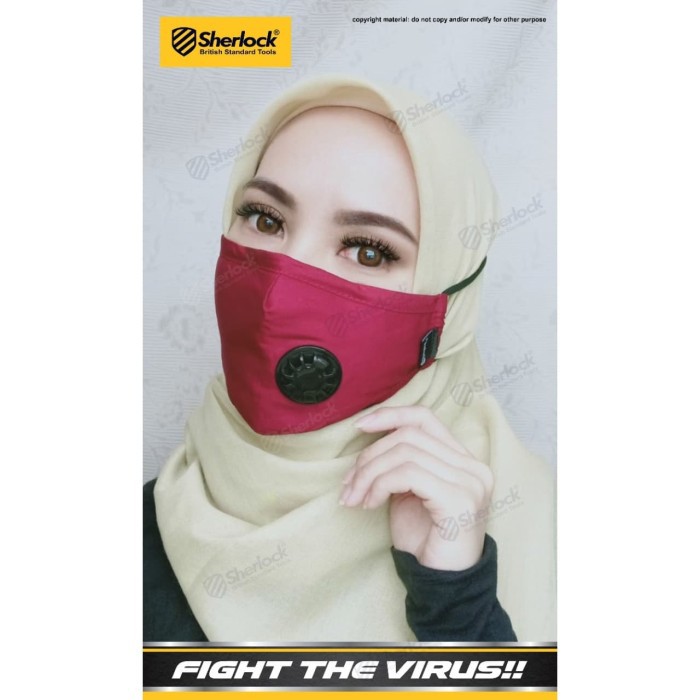 Sherlock Masker Kain Hijab Respirator With N99 Carbon Filter - Red