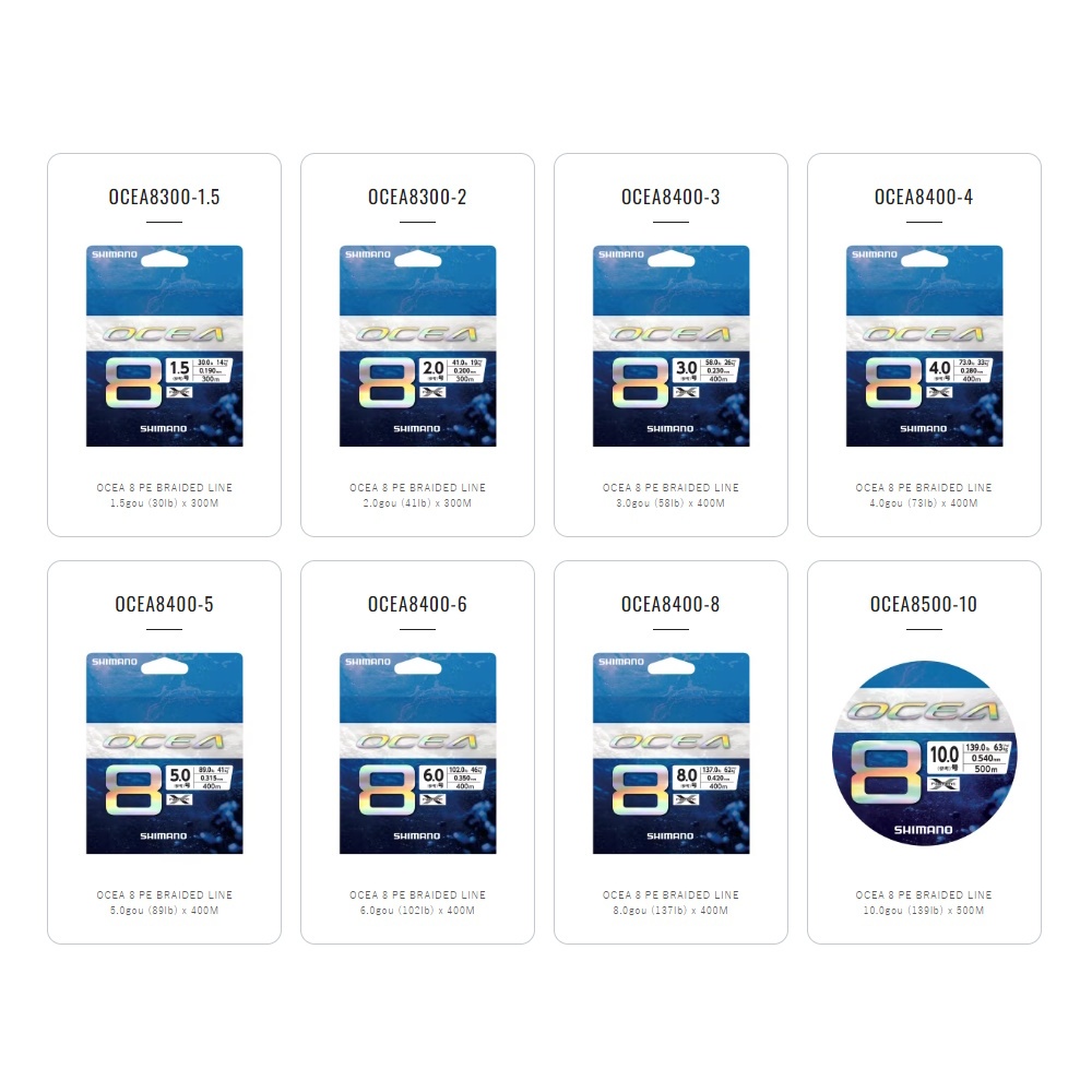 Shimano Ocea 8 PE Braid Multi Color 300m 400m Line Senar Pancing