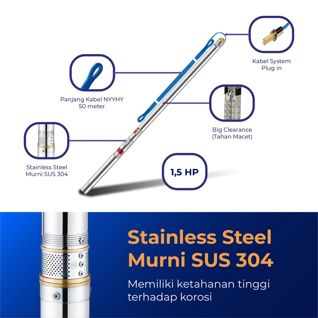 Shimizu Pompa Air Satelit khusus untuk Sumur Dalam (Dengan Kabel) / Pompa Submersible SPG20 333 BIT