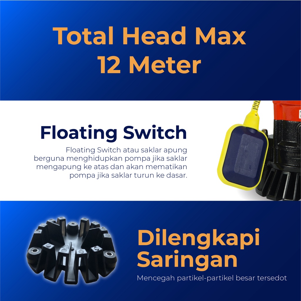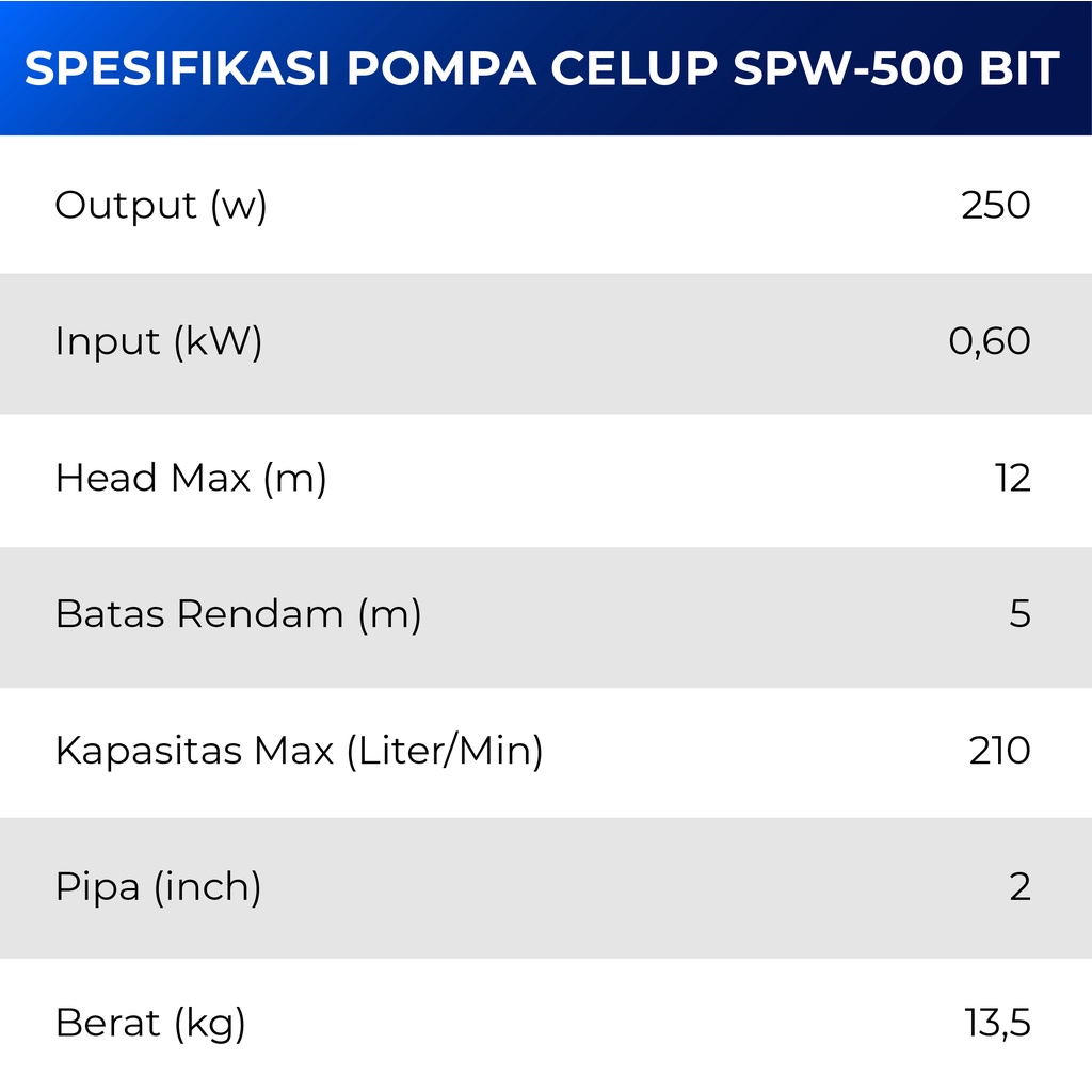 Shimizu Pompa Celup Air Kotor & Air Bersih Otomatis / Pompa Submersible SPW 500 BIT