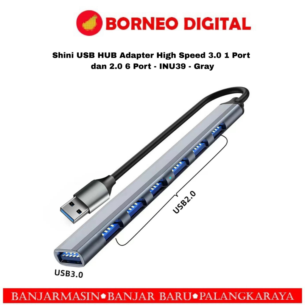Shini USB HUB Adapter High Speed 3.0 1 Port dan 2.0 6 Port - INU39 - Gray