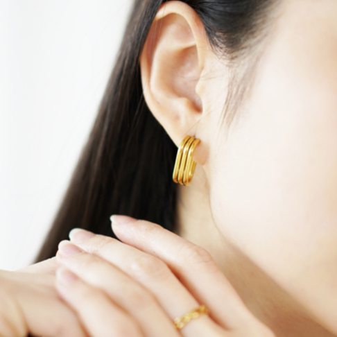 Shinyuu - Gaby Stud Earrings Stainless Steel 18K Gold Plated I Anting tusuk Lapis Emas