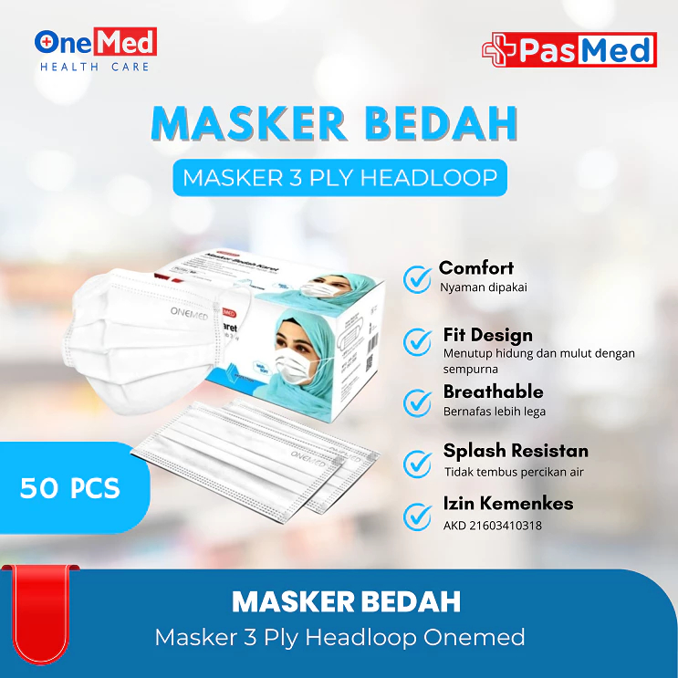 OneMed Masker Jilbab Medis 3ply box isi 50 - PASMED