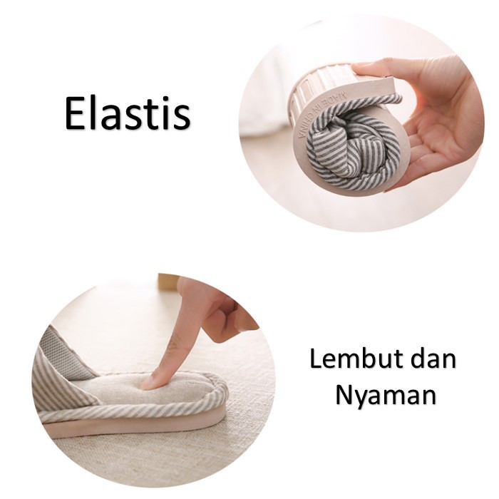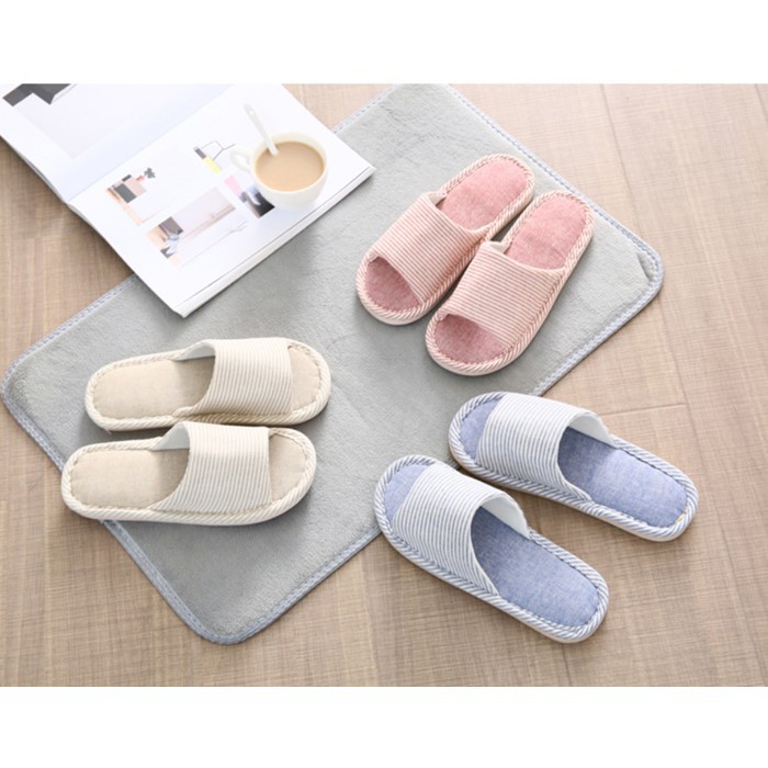 Shopello Sandal Kamar Rumah Anti Slip Sandal Garis Comfy Modis Empuk Sandal Rumahan