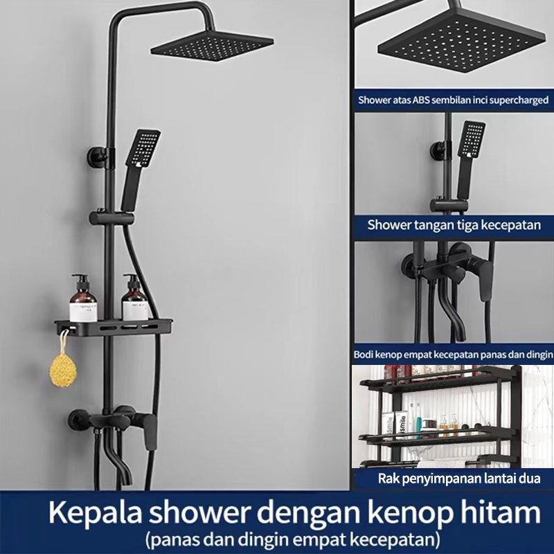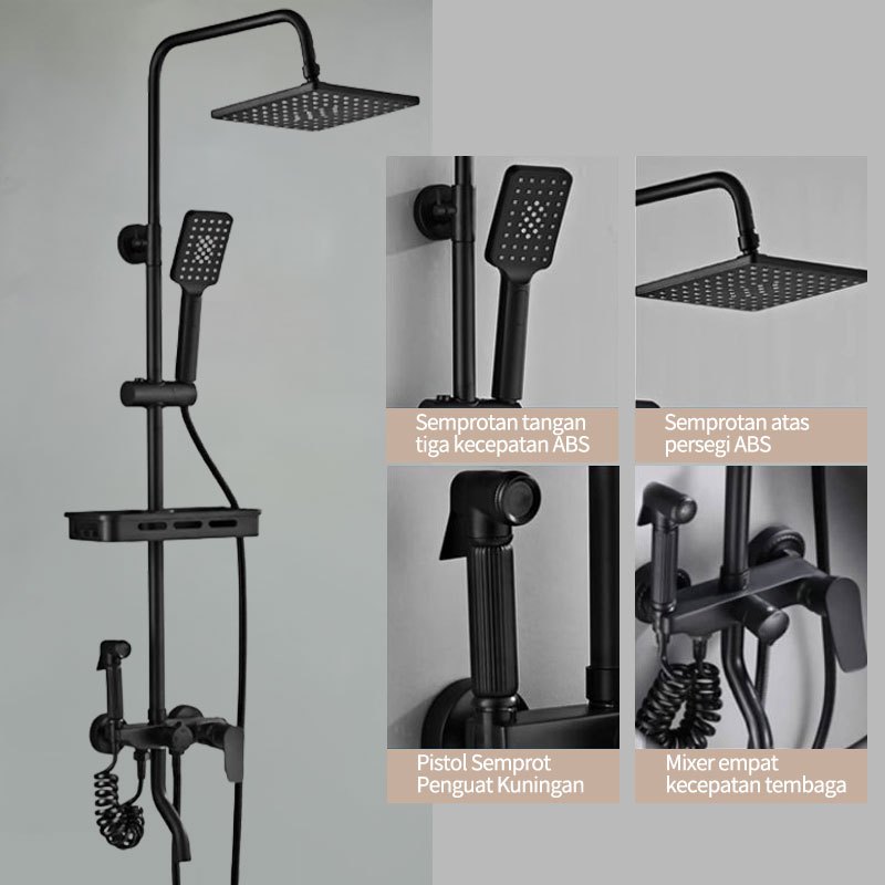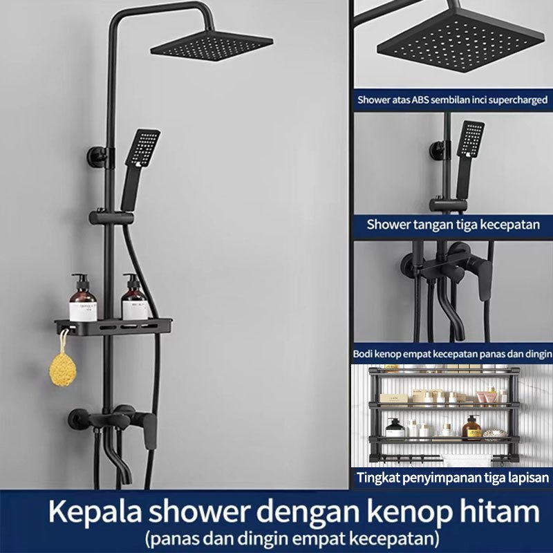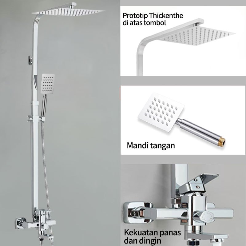 Shower 1 Set Shower Set Kamar Mandi Rain Shower + Keran Cabang - Paket Lengkap Shower Kotak/Bulat Bahan Stainless/Mandi Shower
