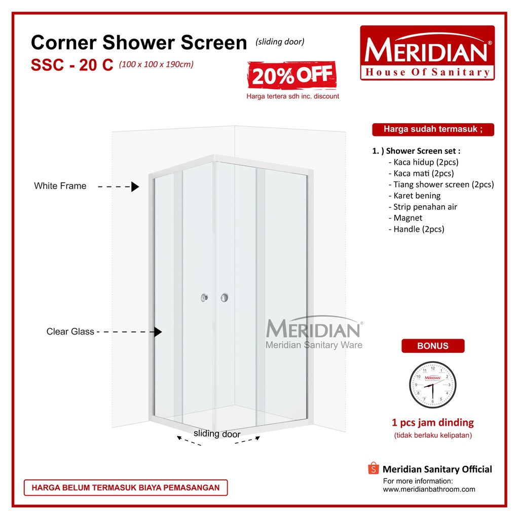 Shower Box MERIDIAN SSC 20 C (100 x 100 x 190 cm) FRAME WHITE