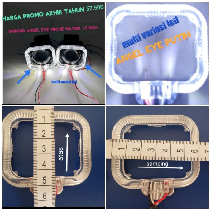Shroud angel eye PUTIH lampu LED projie matrix ukuran 1,5 inch untuk motor dan mobil