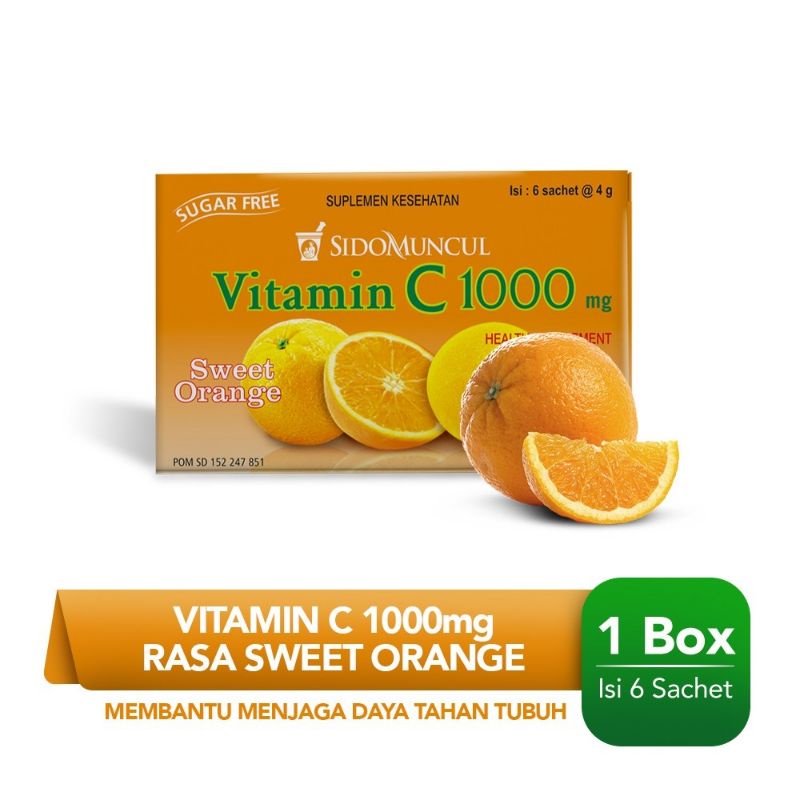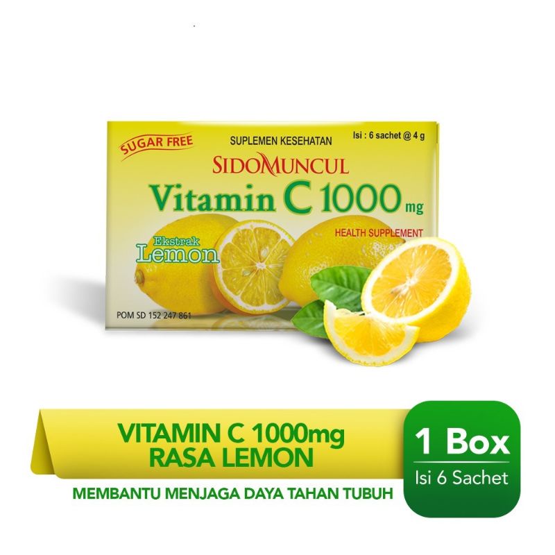 Sido Muncul Vitamin C 1000 Serbuk Lemon 6's - Jaga Daya Tahan Tubuh | Sweet Orange | Kukubima Vitamin C 1000mg Original | Anggur