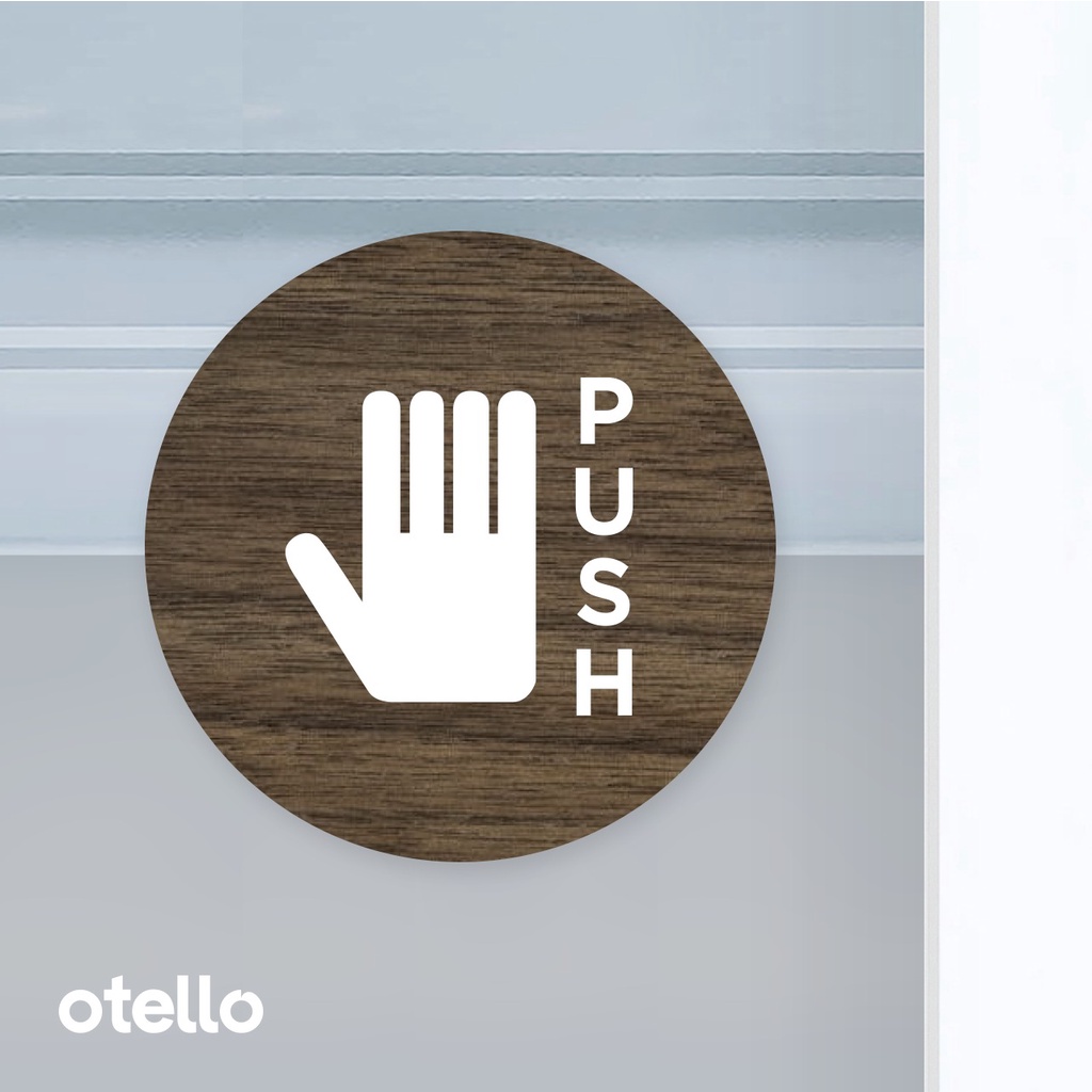 Sign Akrilik Push Pull Bulat Icon Minimalist Signage Board Label Acrylic Pintu Tempel Sticker Pintu Kafe Restoran Kantor Gedung