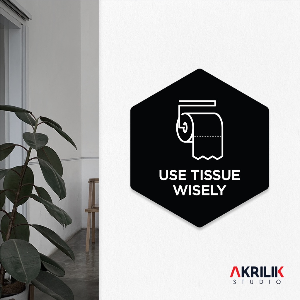 Sign Board Akrilik Use Tissue Wisely Papan Acrylic Signage Tempel Dinding Tulisan Label Tanda Petunjuk Rambu Aklirik UV Print Nama Himbauan