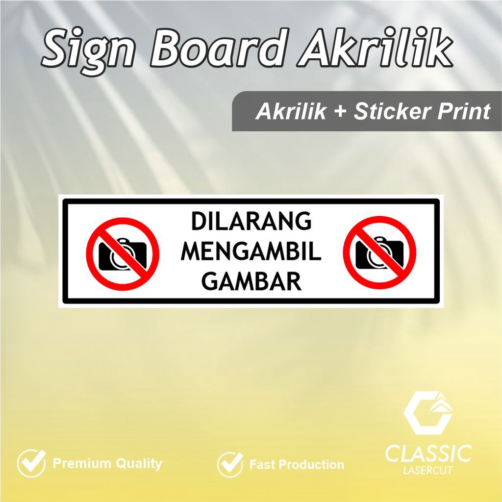 Sign Board Dilarang Mengambil Gambar / Sign Board Akrilik / Signange Dilarang Mengambil Gambar