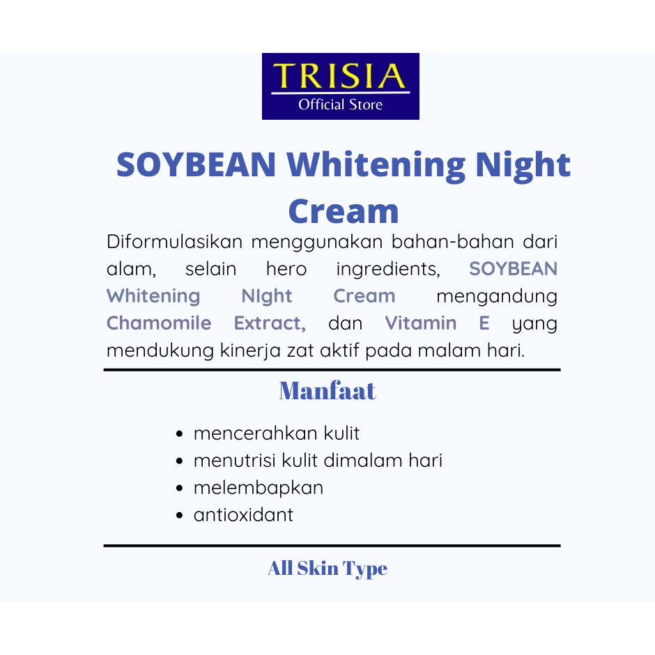 Trisia Soybean Whitening Night Moisturizer Cream - Mencerahkan, Melembabkan, melembutkan kulit