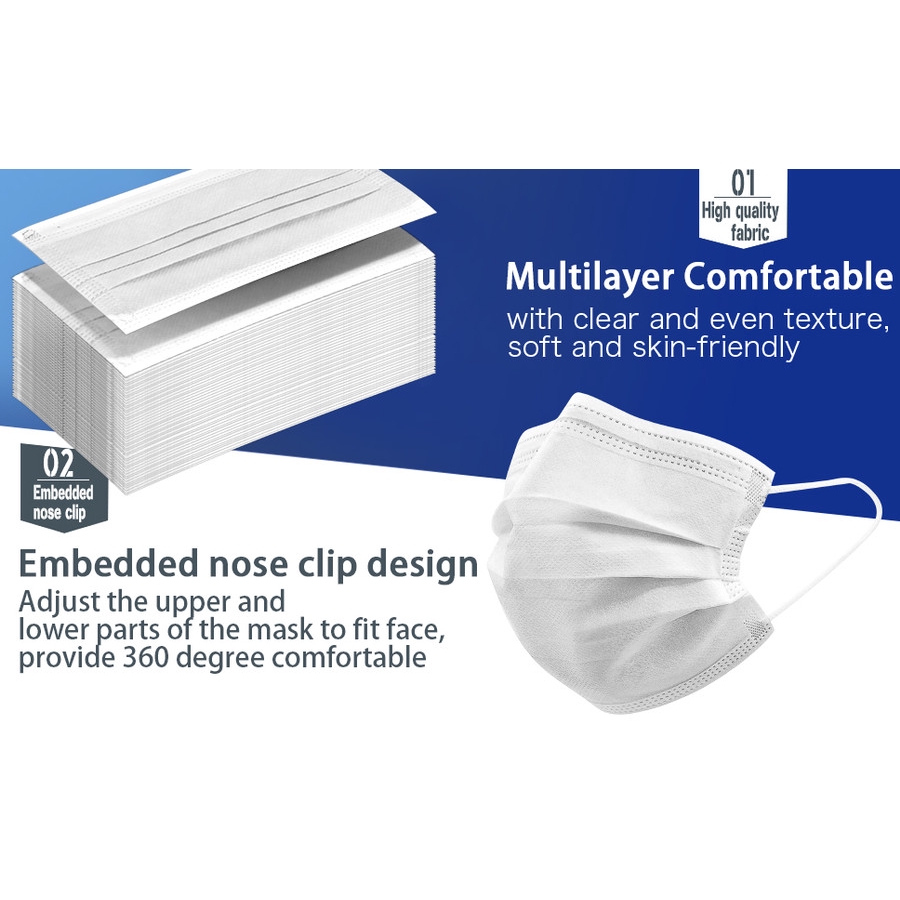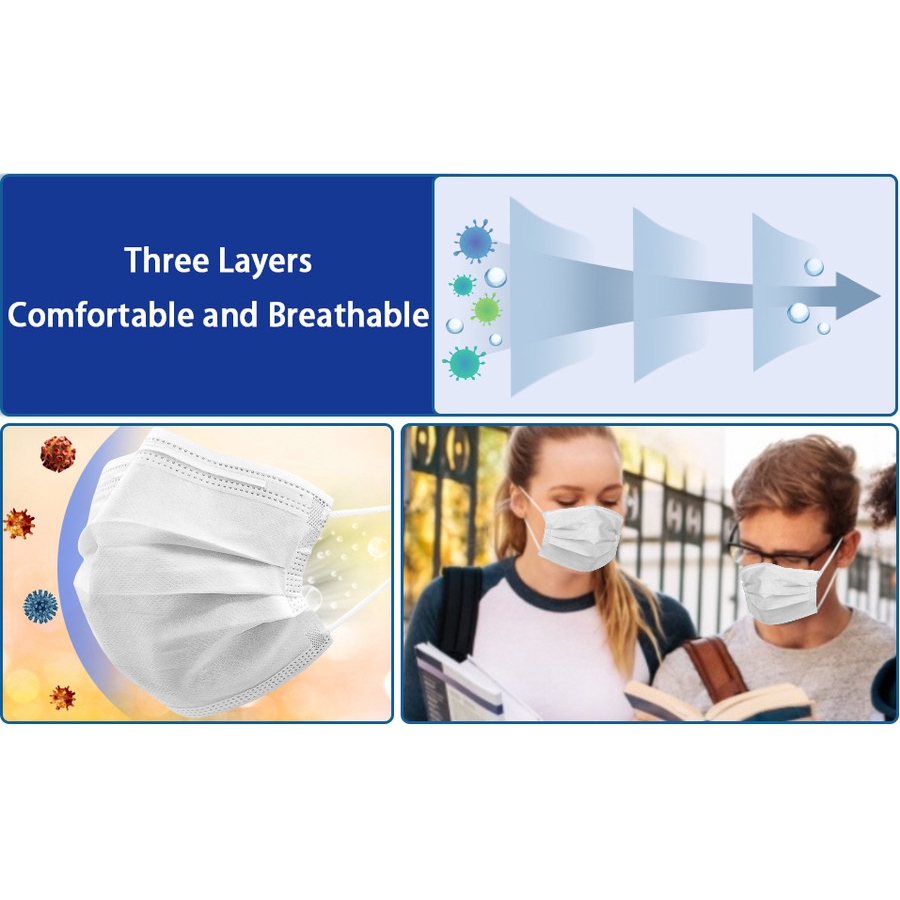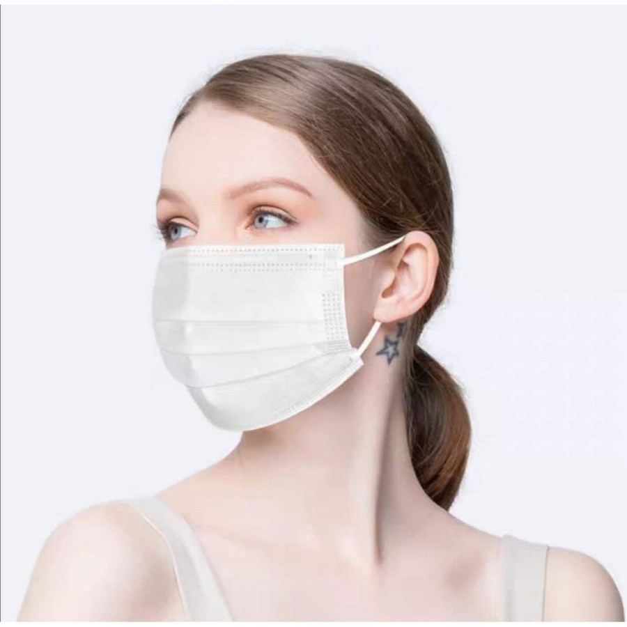 Masker 3 ply 3ply isi 50 PUTIH BIRU HIJAU Polos Earloop Cantol