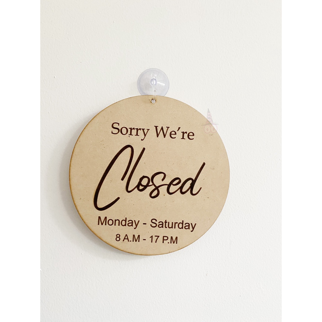 Sign Open Closed Kayu / Signage Kayu Open Closed / Papan tanda open close / Buka Tutup Bolak Balik / Papan Kayu Gantungan Pintu, Dinding Kaca / Sign Board Kayu Signage Gantungan Toko Cafe Resto Buka Tutup Loket