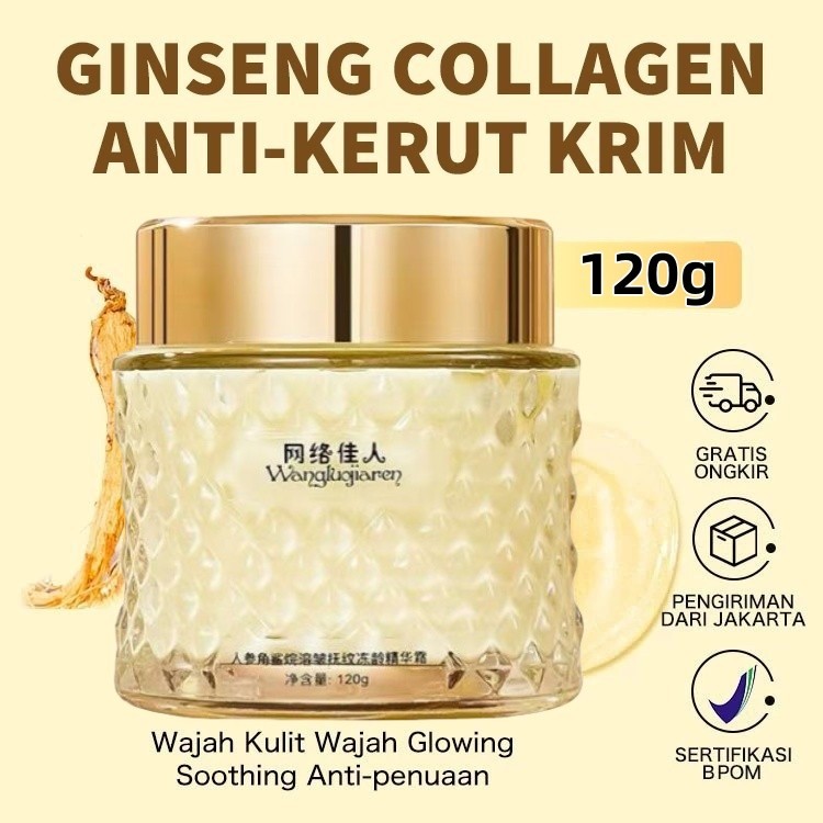 Ginseng Cream 120g Krim Anti Kerut Cream Ginseng Hydrating Anti Aging Cream Wajah Kulit Wajah Glowing Soothing Anti-penuaan Rough Gel Moisturizing Mengencangkan Kulit Wajah Skin Skincare Moisturizer Collagen Sensitive