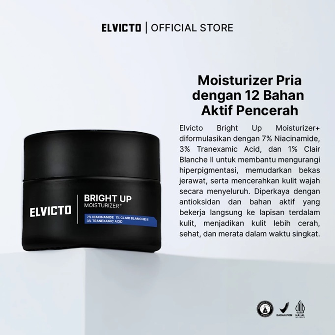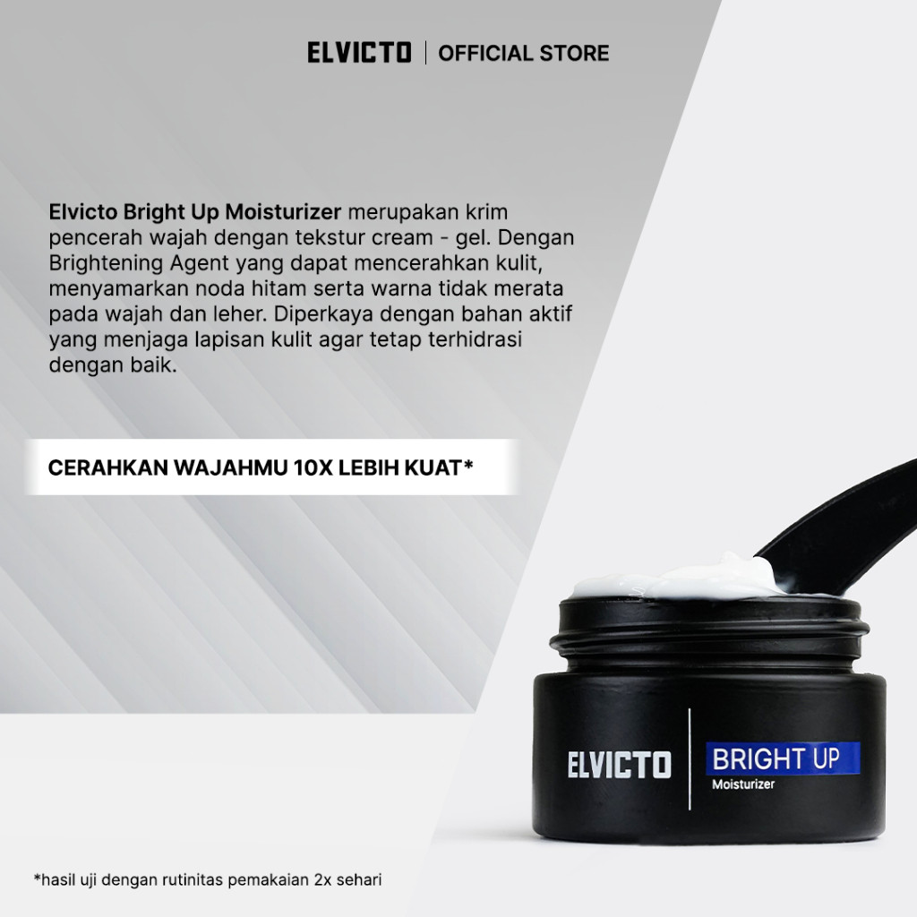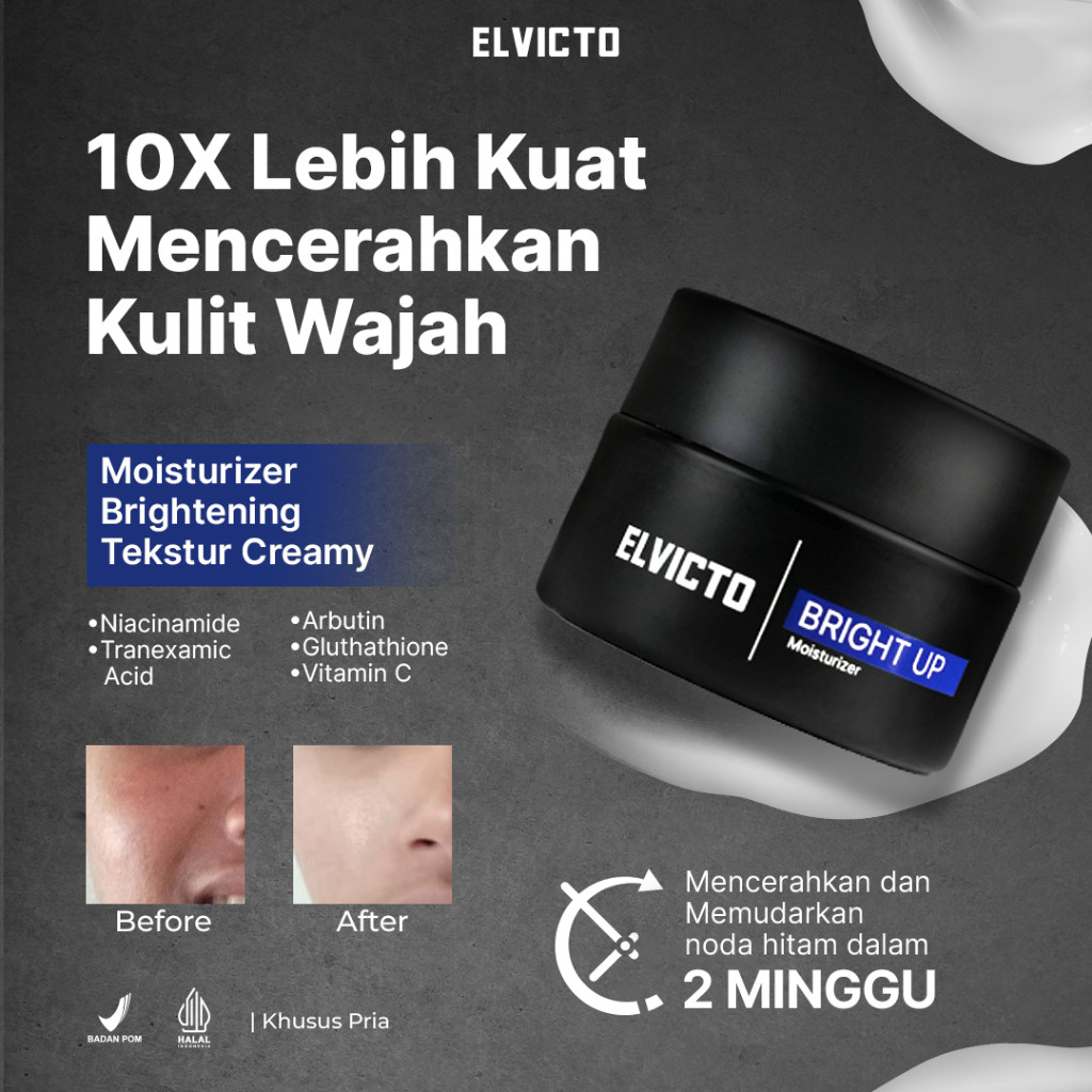 PROMO ELVICTO BRIGHT UP MOISTURIZER+ / Pelembap Wajah Pria, Perawatan untuk Mencerahkan Wajah, Mengurangi Noda Hitam / Mengandung Niacinamide, Glutathione, Alpha Arbutin