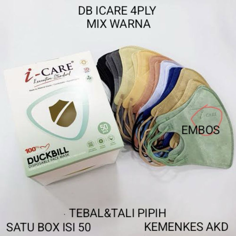 MASKER DUCKBILL I-CARE 4PLY EMBOS MIX WARNA ISI 50+BOX