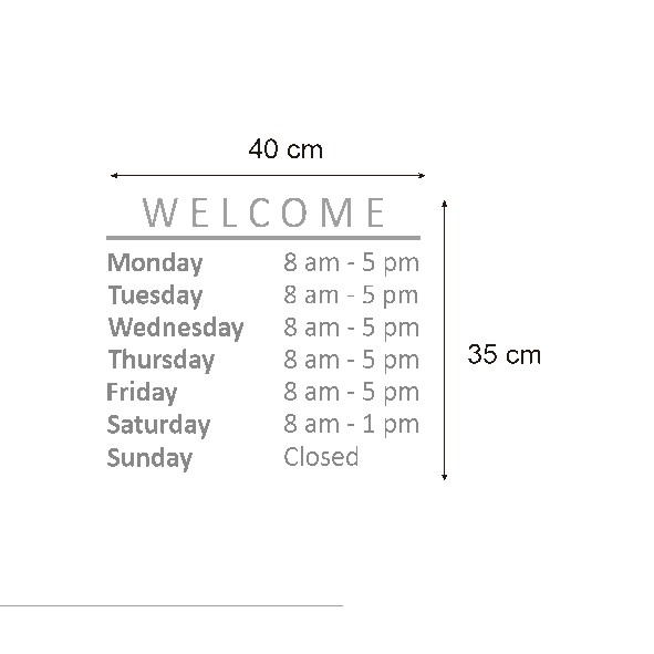 Sign Stiker Jam Buka Tutup Toko Welcome Store Opening Hours Cutting Sticker Kaca Jendela Pintu Cafe