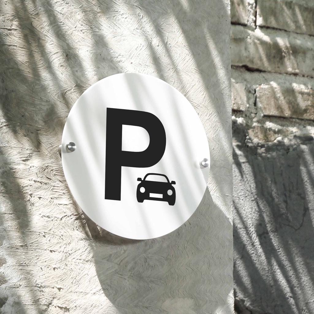 Signage Acrylic Pen Iklan Sign Lingkaran Putih - Parkir Mobil Area