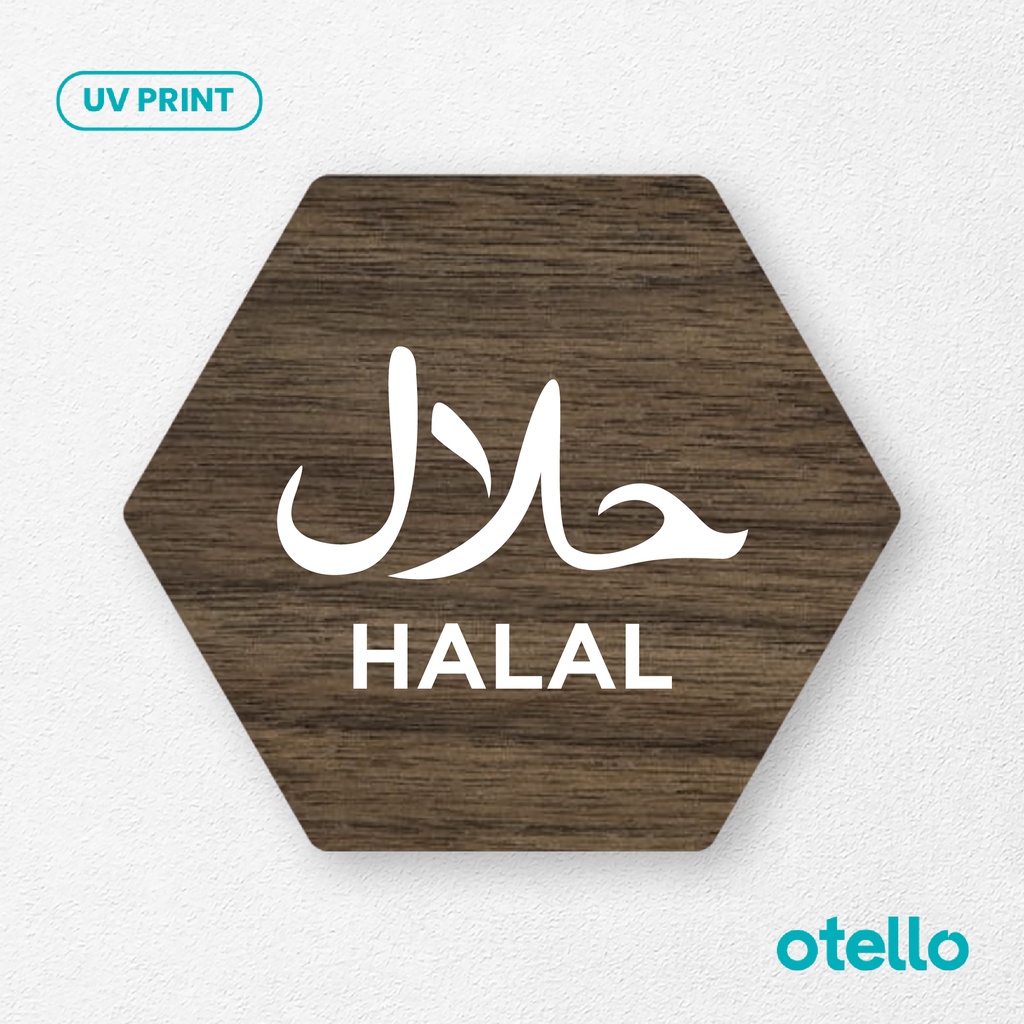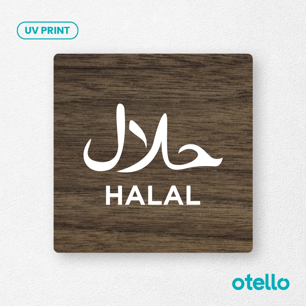 Signage Halal Logo Icon Sign Board Papan Toko Kafe Restoran Label Tempel Kayu Cafe