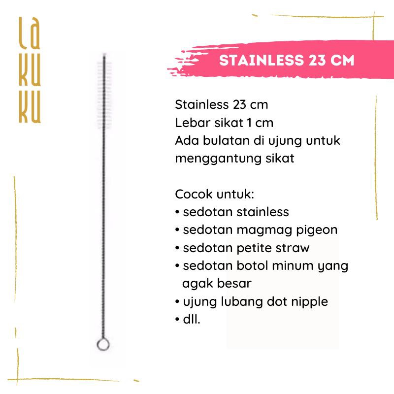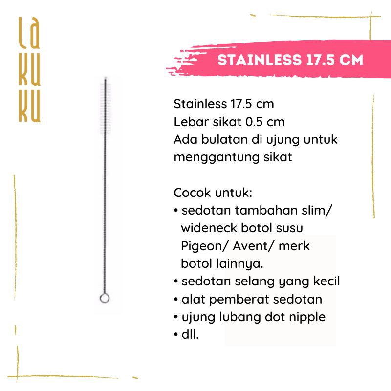 Sikat Botol dan Sedotan - Stainless Brush 17,5 cm atau 23 cm