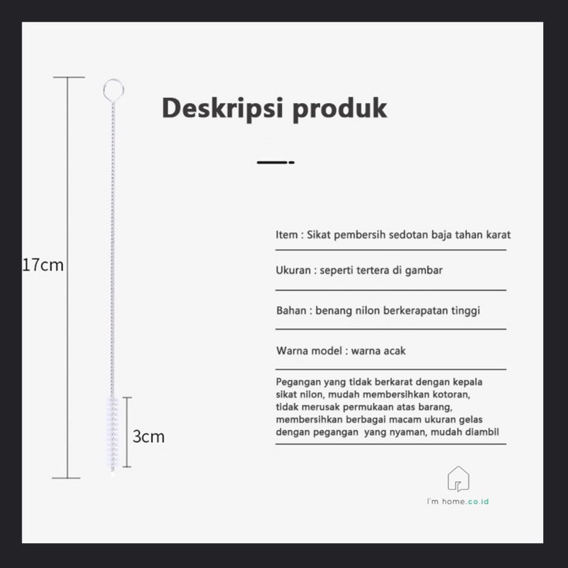 Sikat Sedotan IMHOME pembersih lubang kecil dot bayi botol minum stainless steel perabotan rumah tangga peralatan dapur murah kelontongan reseller dropship gagang lentur anti karat souvenir pernikahan unik bermanfaat harga grosir barang dagangan laris