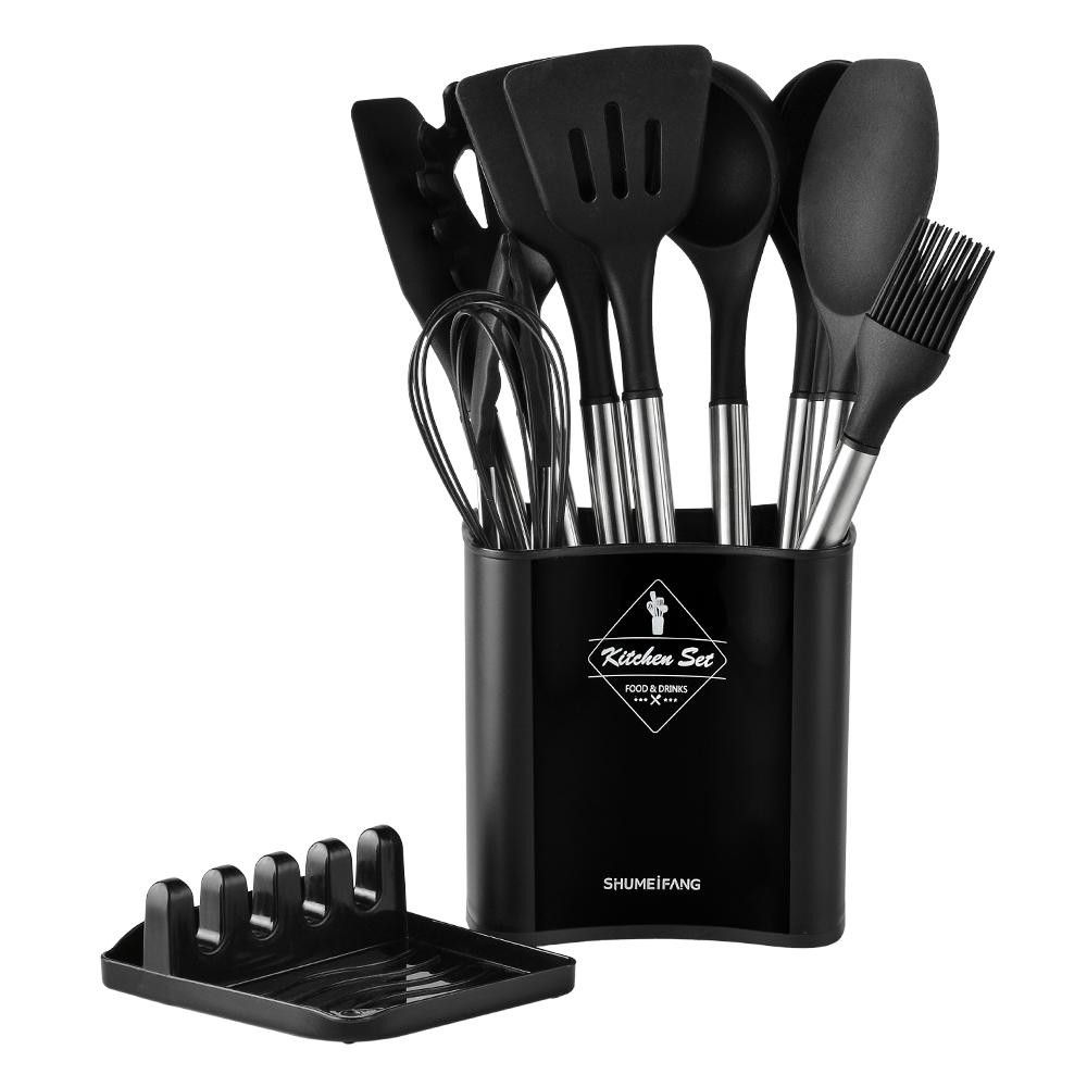 Silicone Utensil Set 13Pcs / PREMIUM Utensil Bucket Silicone Set /Spatula Sutil Silikon Set 13Pcs Full ORIGINAL KITCHEN SET