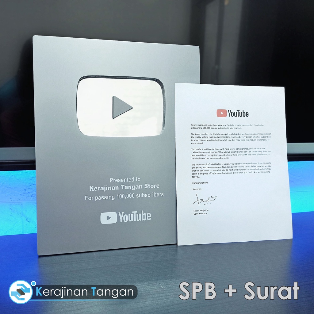 Silver Play Button Youtube Replika Custom Nama