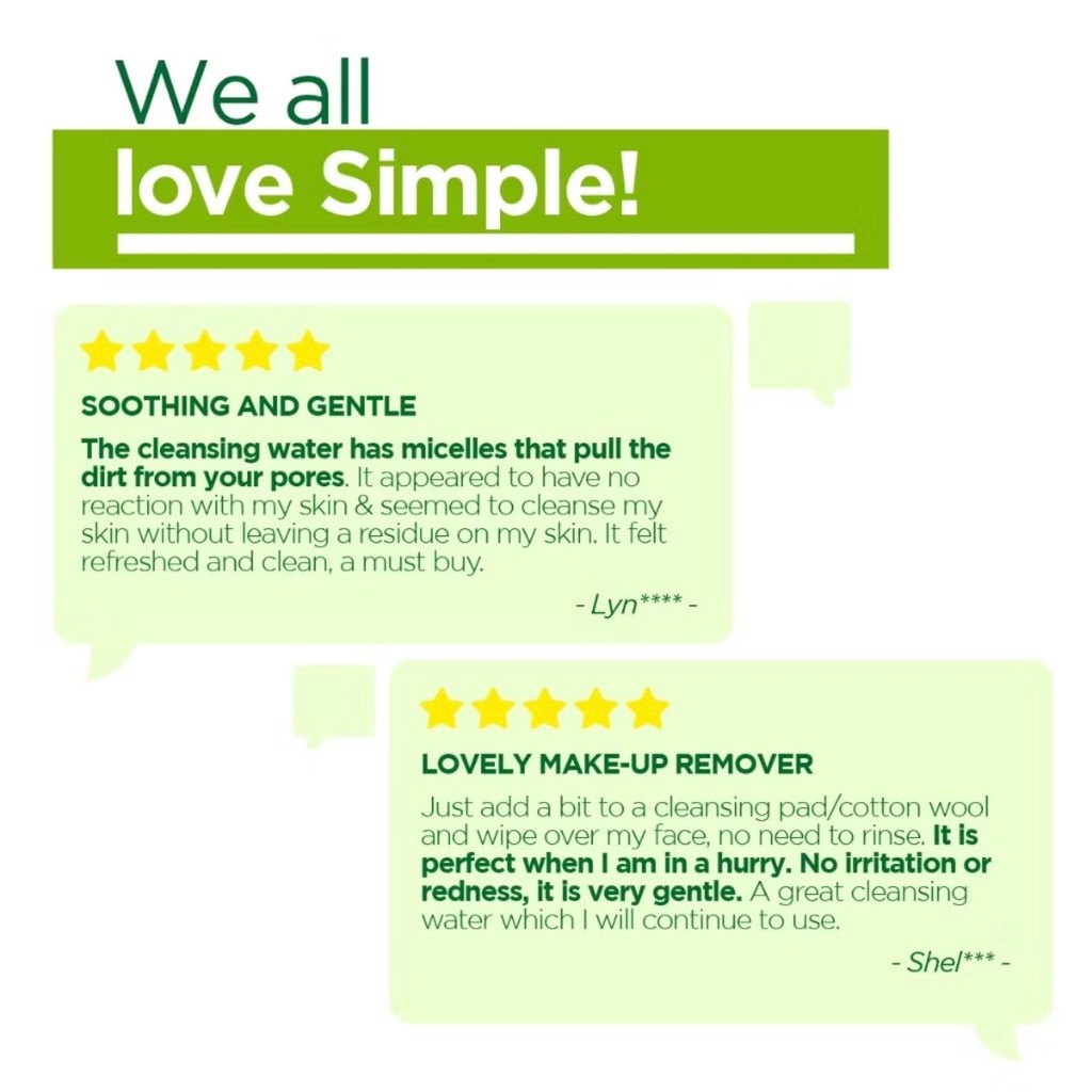 Simple Kind To Skin Micellar Cleansing Water 200ml - No Harsh Chemicals