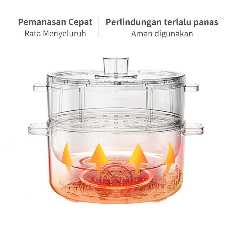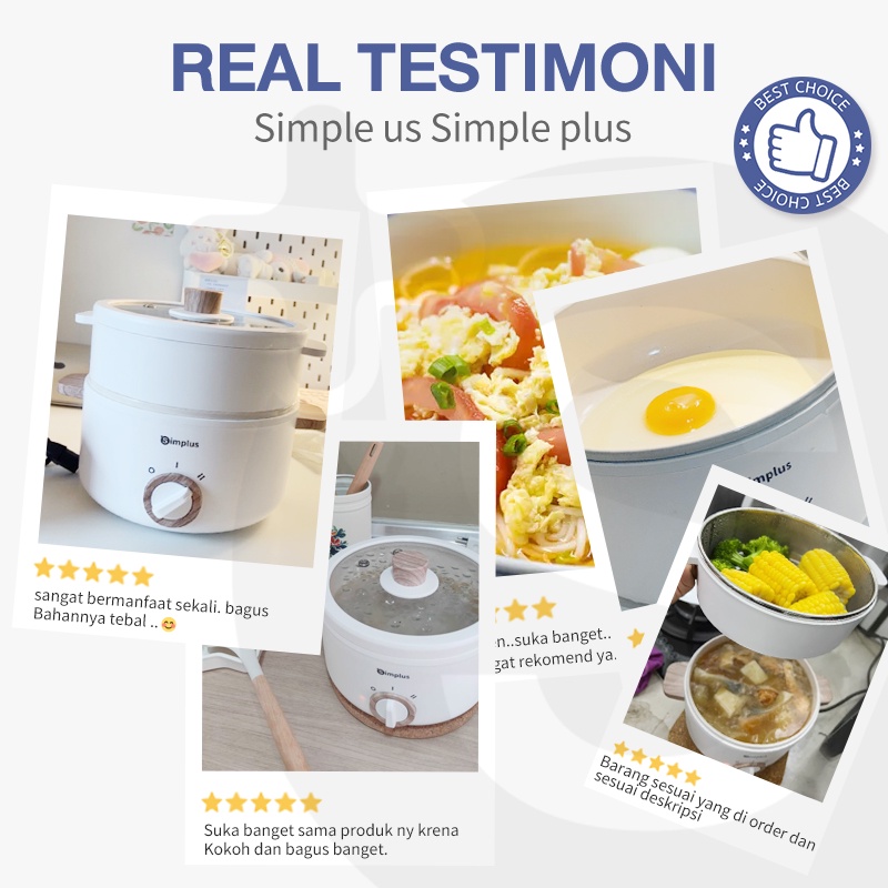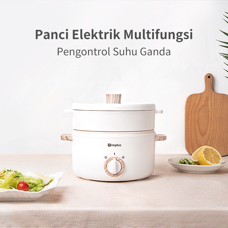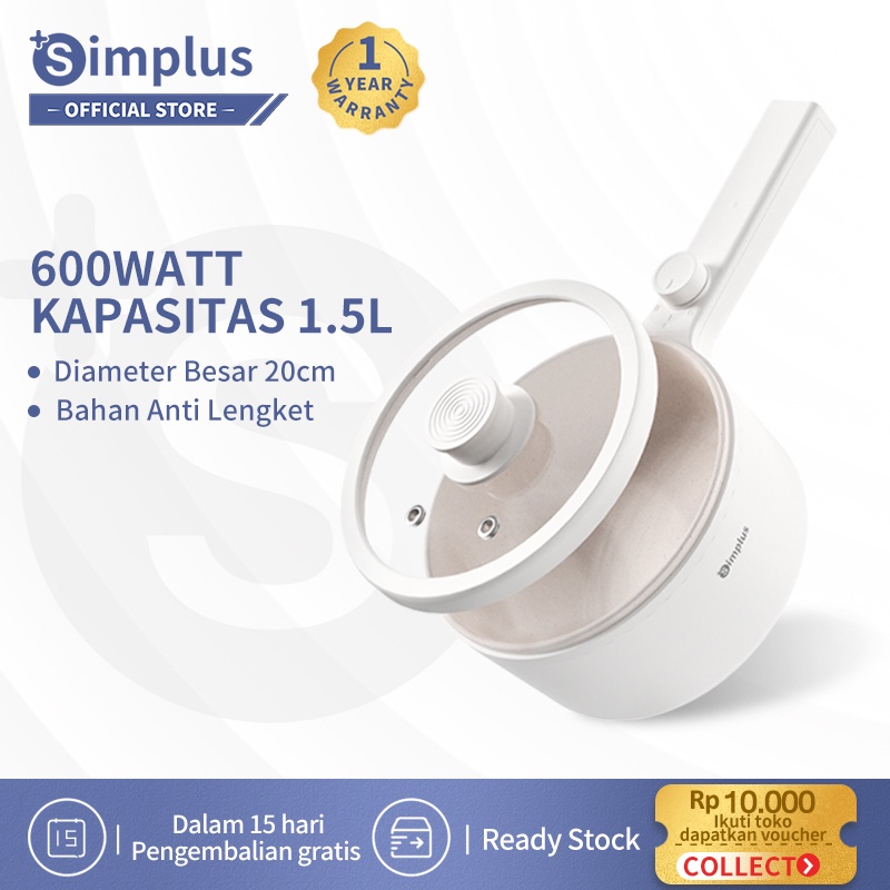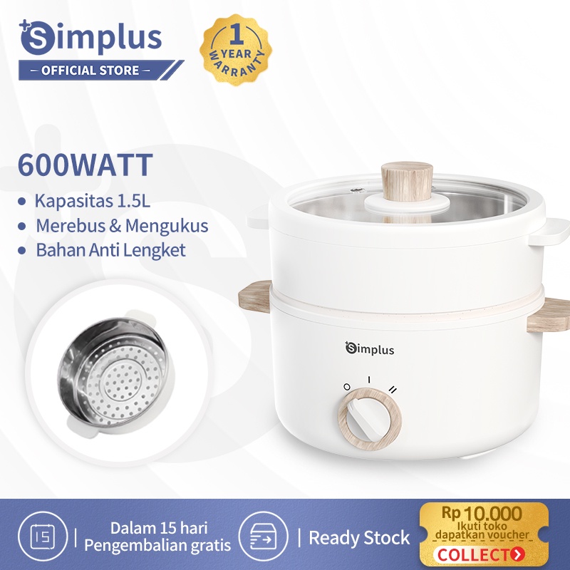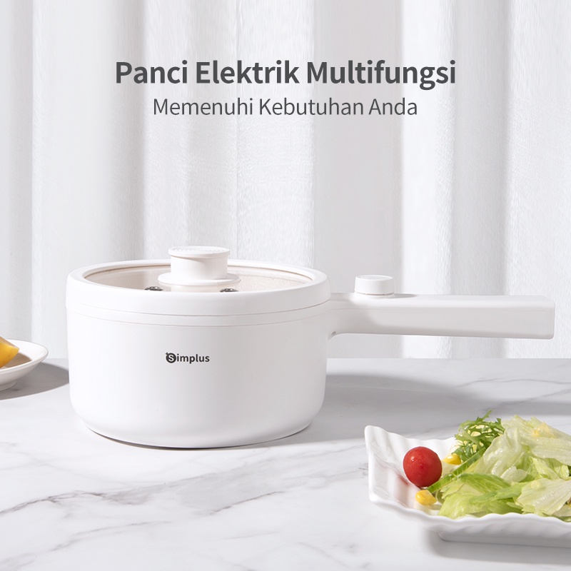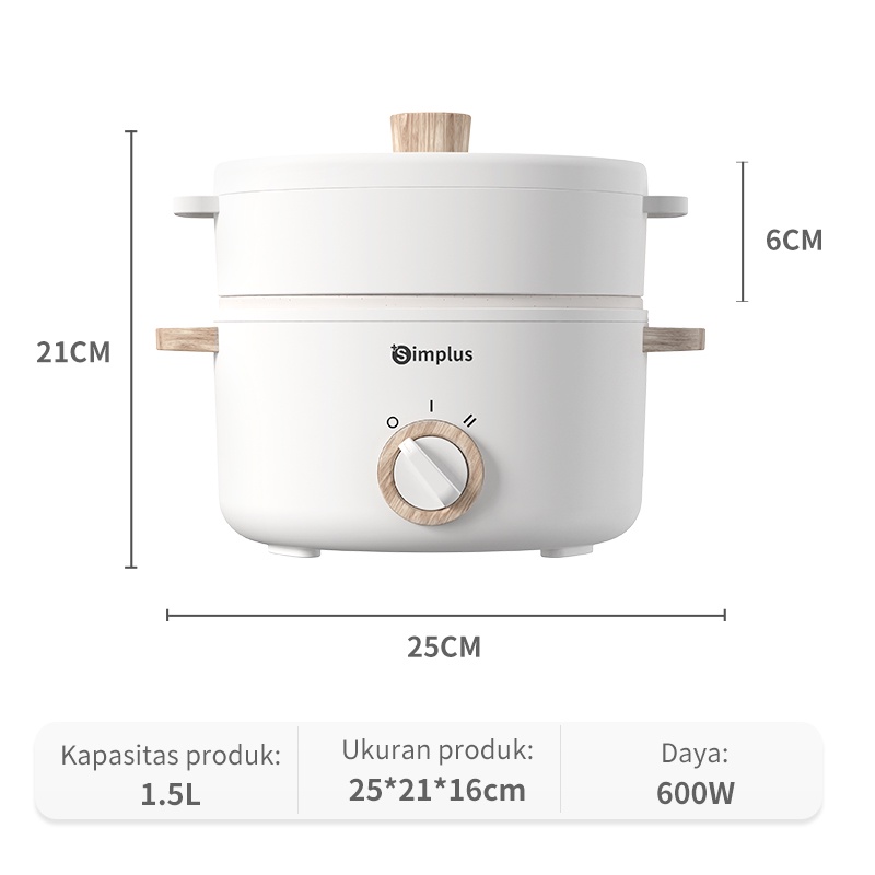 Simplus Panci Listrik Kukusan Serbaguna 600 Watt Low Watt 1.5L Kompor listrik Lapisan Keramik Panci Anti-lengket Electric Pot Portable Wajan Frying Pan Electric