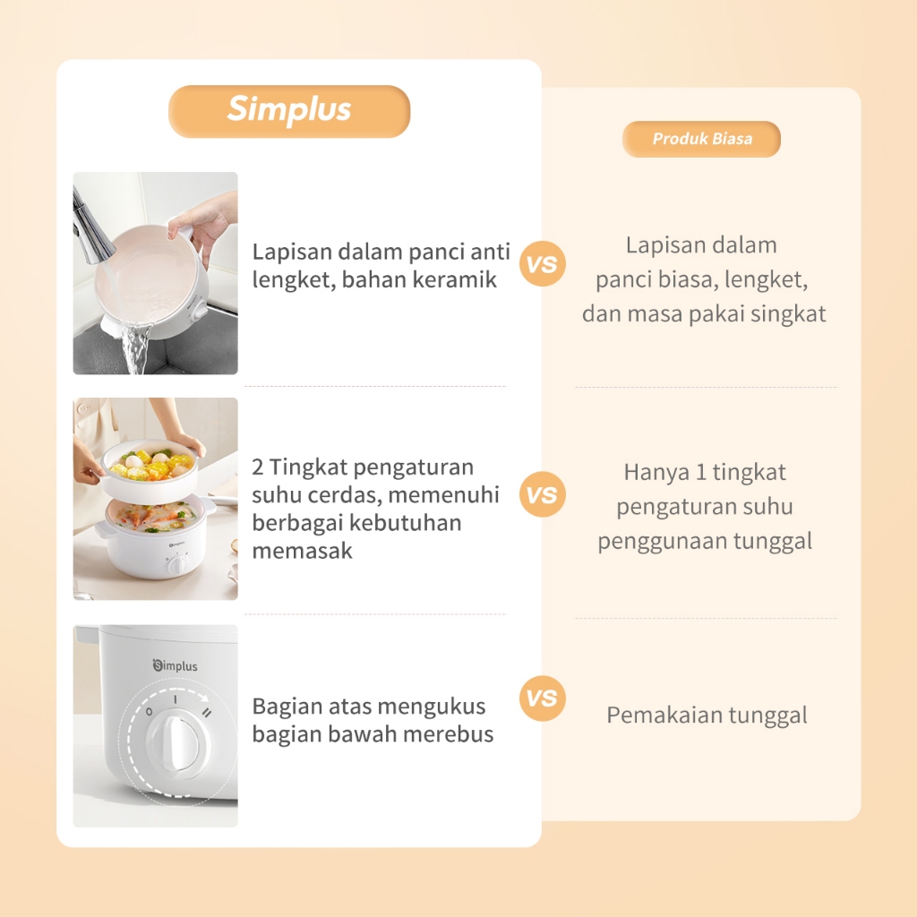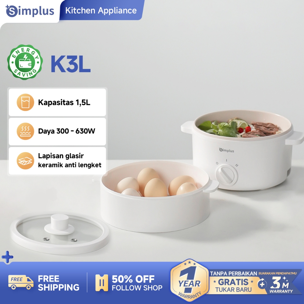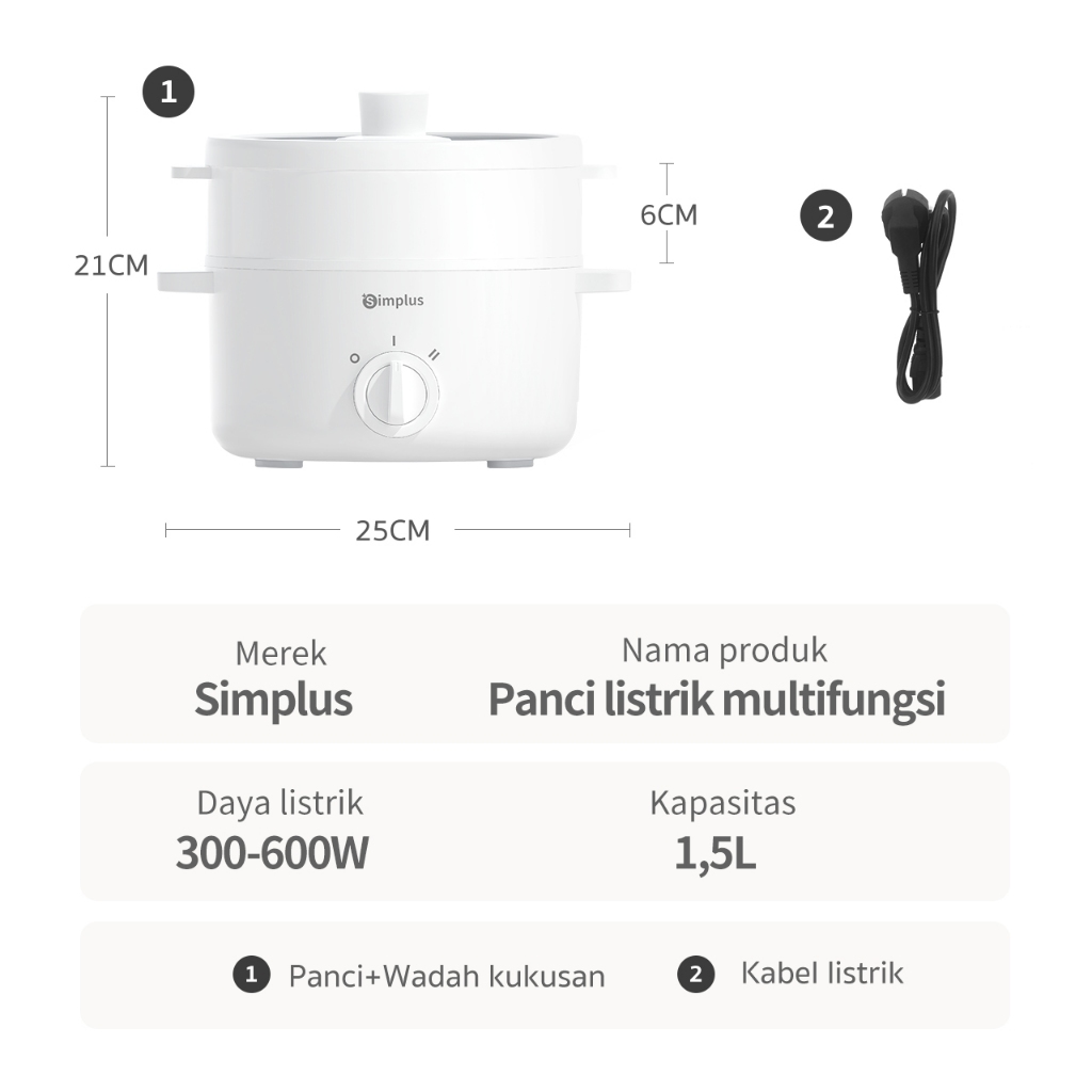 Simplus Panci Listrik Multifungsi 1,5L/3L Rice cooker Kukusan Listrik Steamer