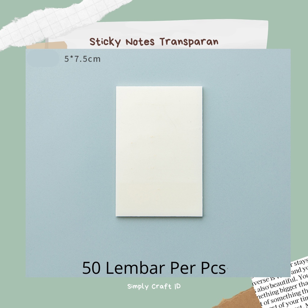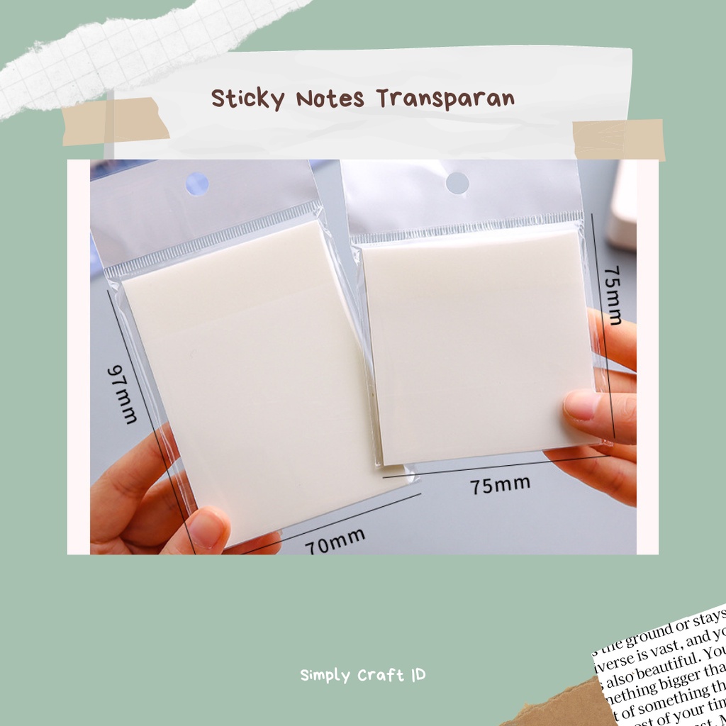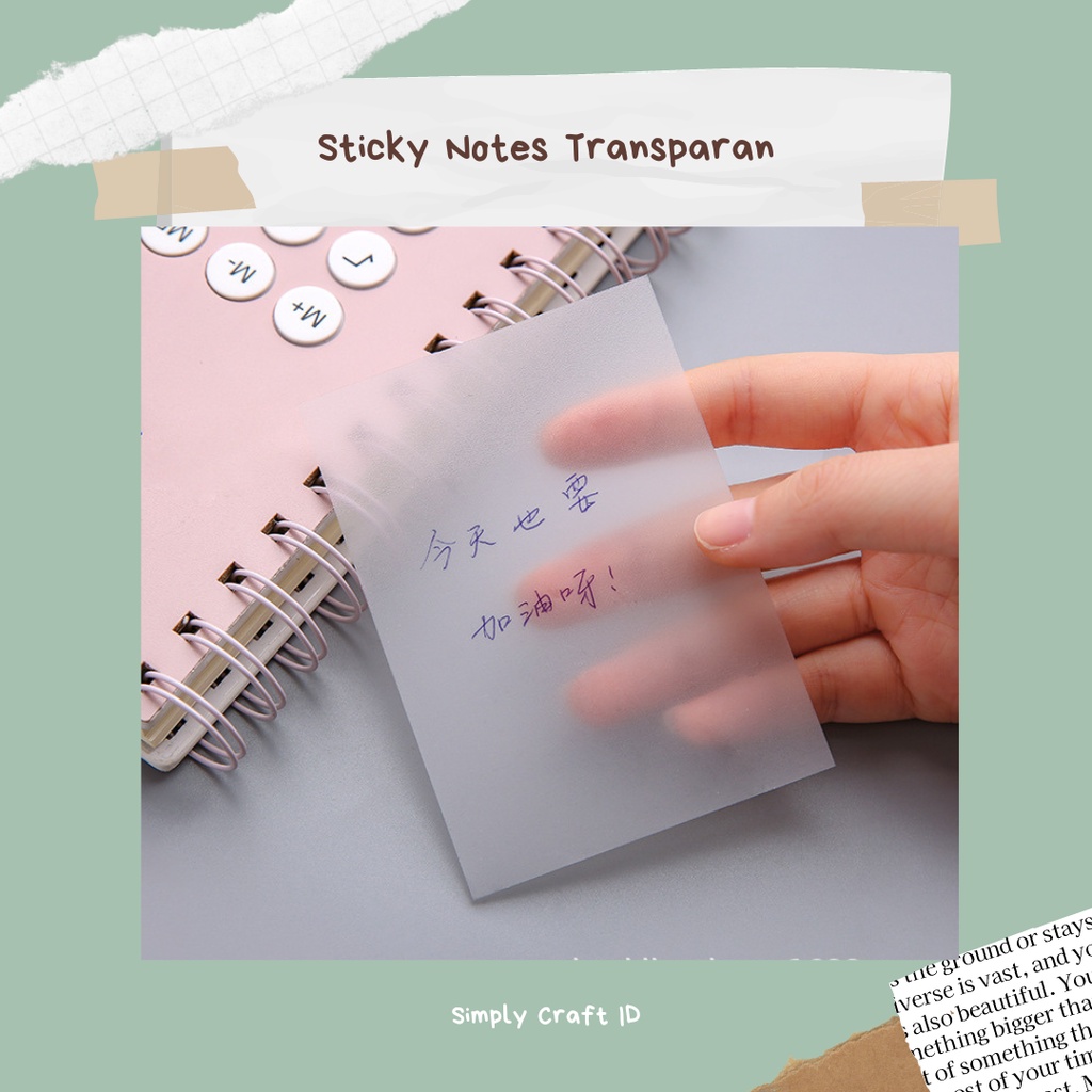 Simply Craft ID - Sticky Notes Transparan 50 lembar anti Air tahan air / Transparent Sticky notes untuk sekolah kantor / memo bening tempel