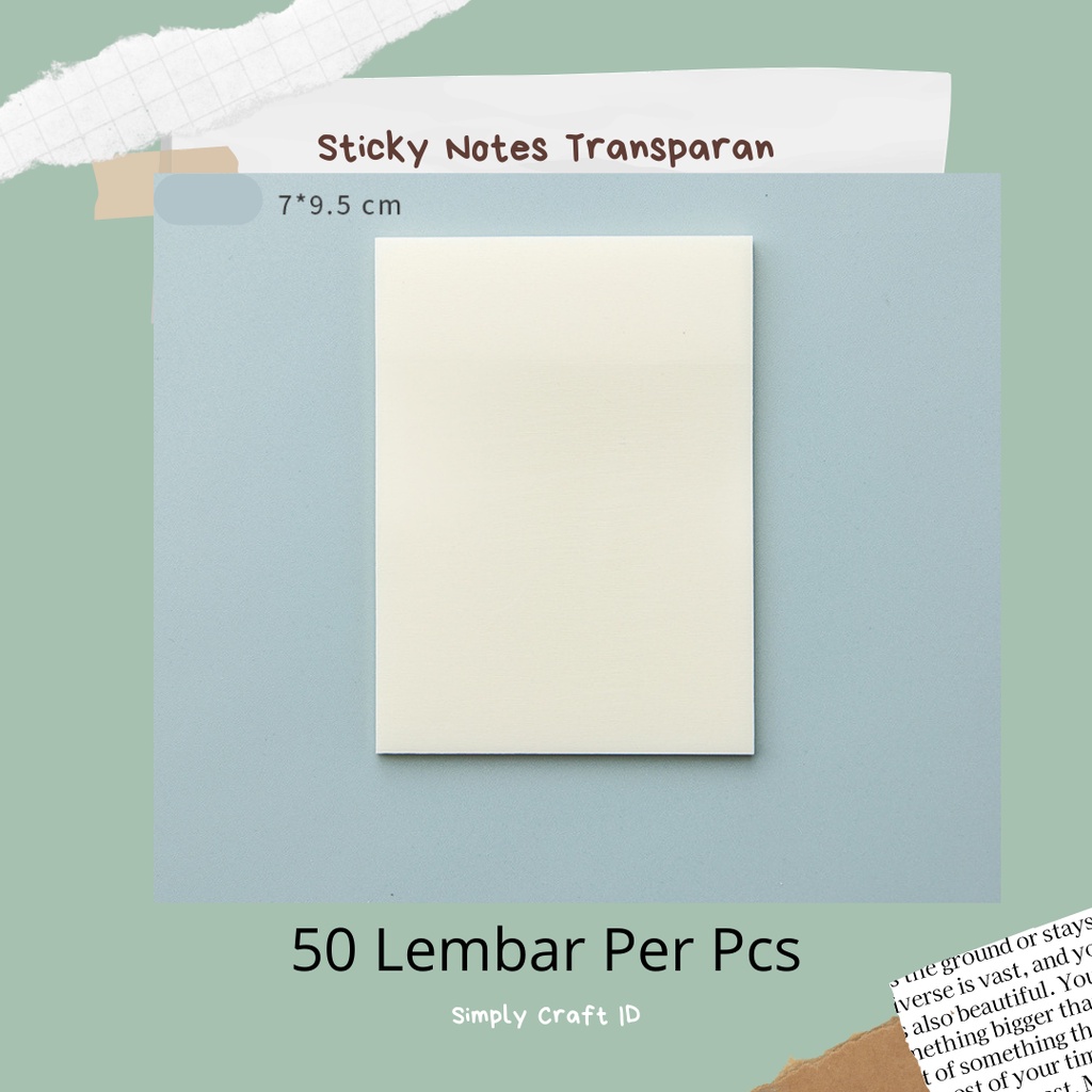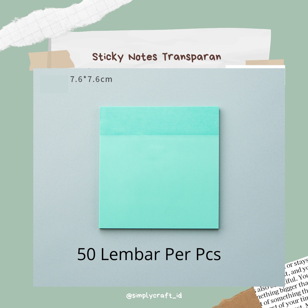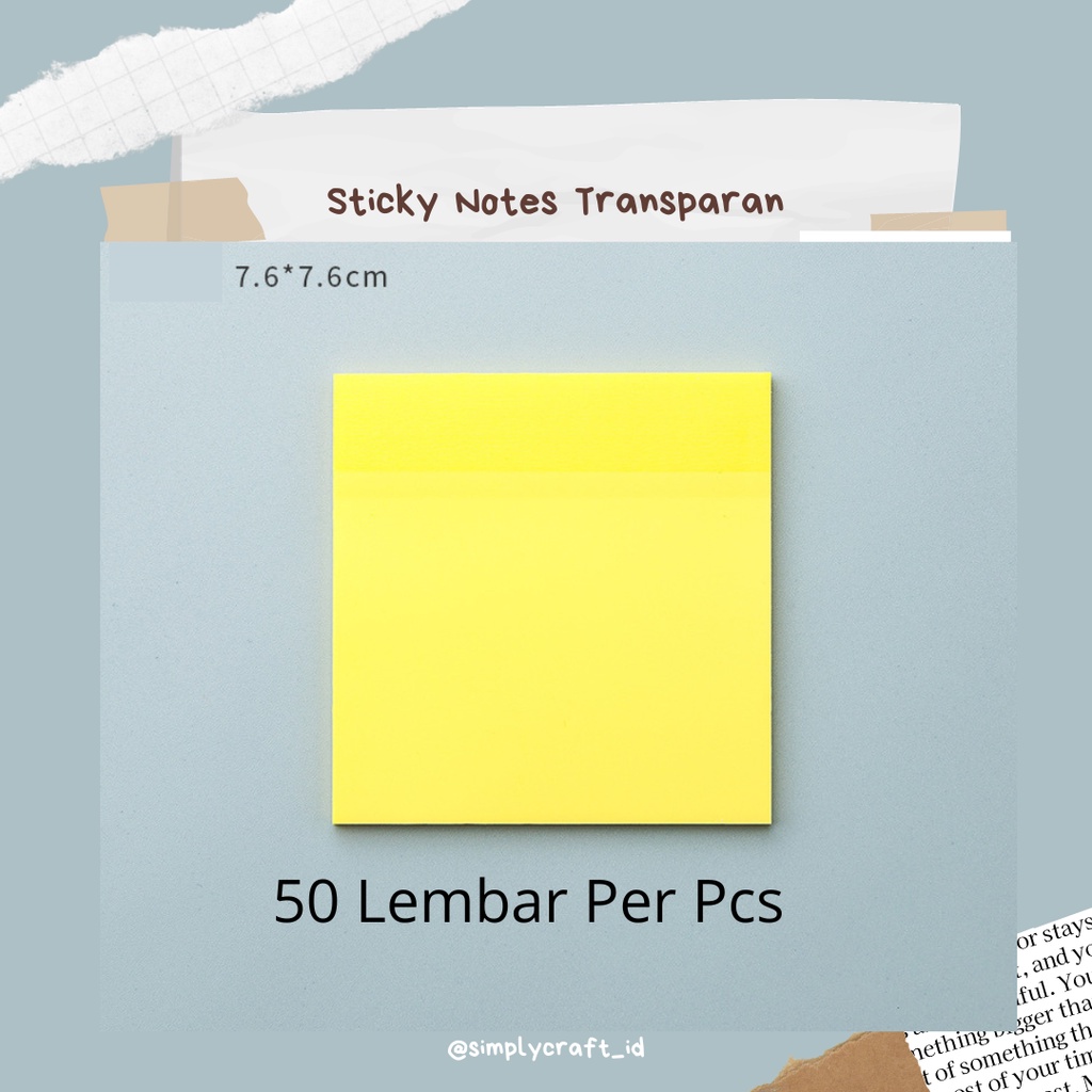 Simply Craft ID - Sticky Notes Transparan 50 lembar anti Air tahan air / Transparent Sticky notes untuk sekolah kantor / memo bening tempel