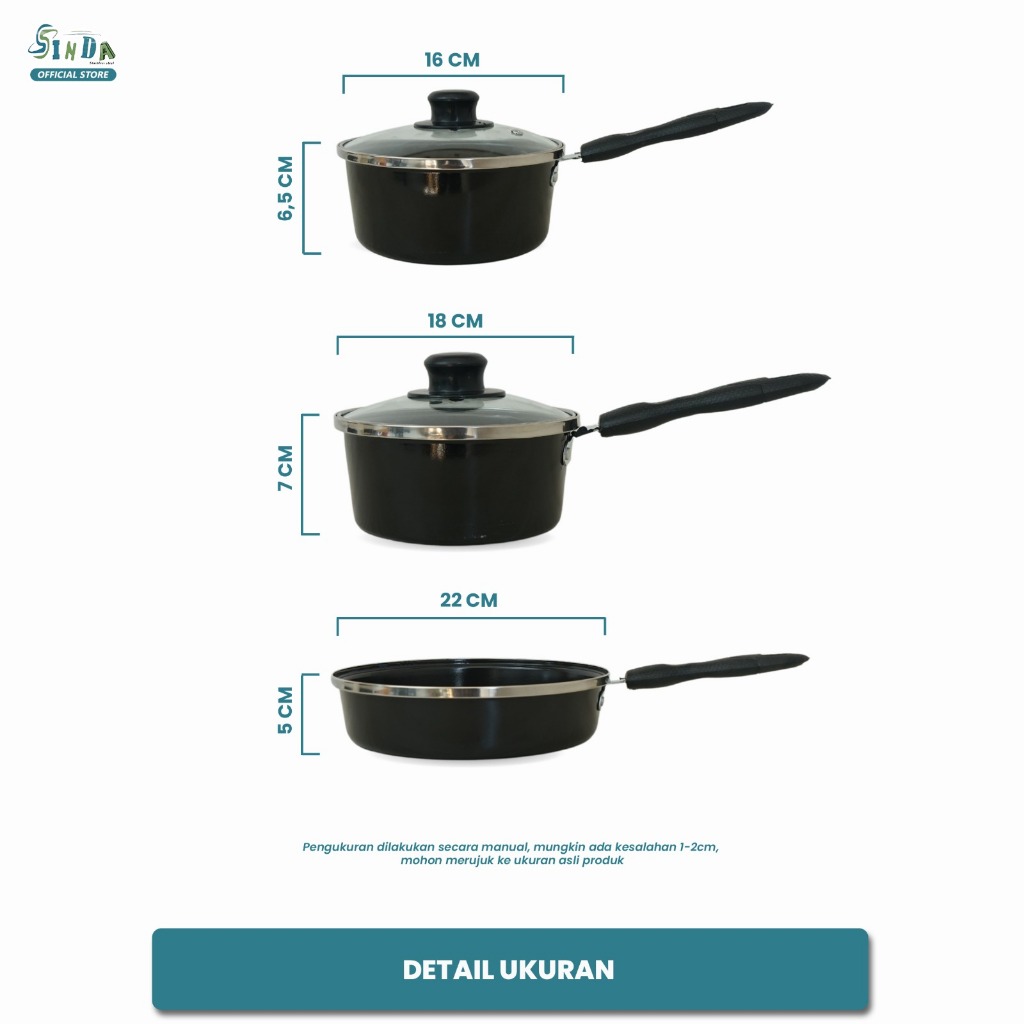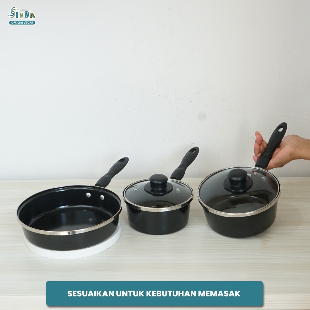 Sinda Panci Set 3IN1 Panci Susu Gagang Plastik Panci Susu Anti lengket