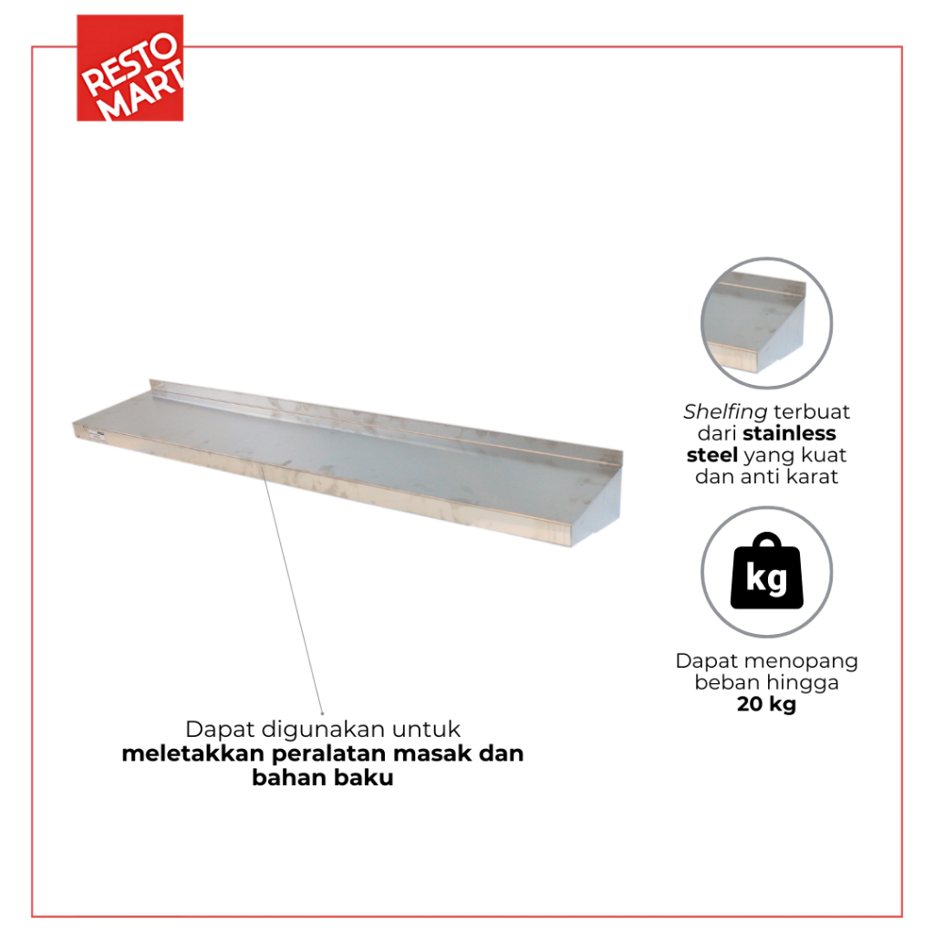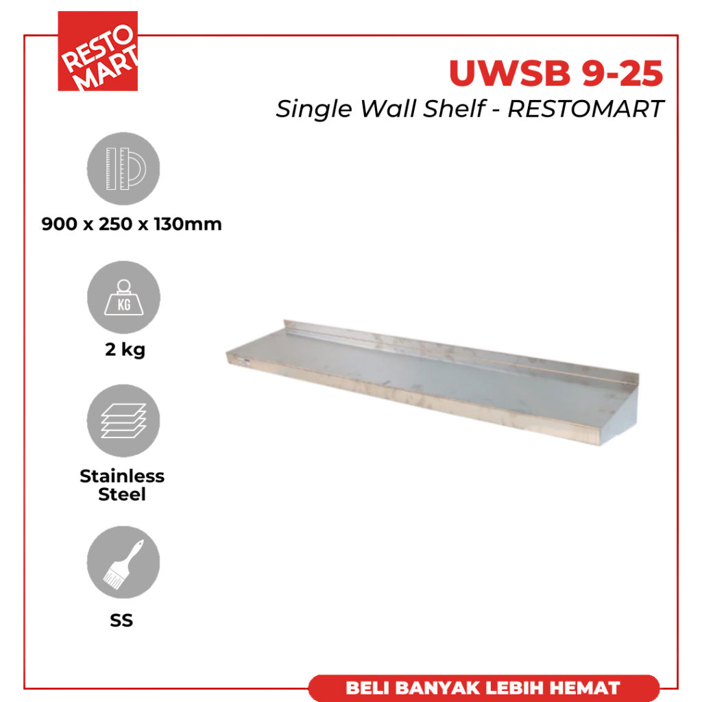 Single Wall Shelf 9-25 / Rak Dinding Tempel / UWSB 9-25 UMKM RESTOMART Stainless (1418009) (F6)