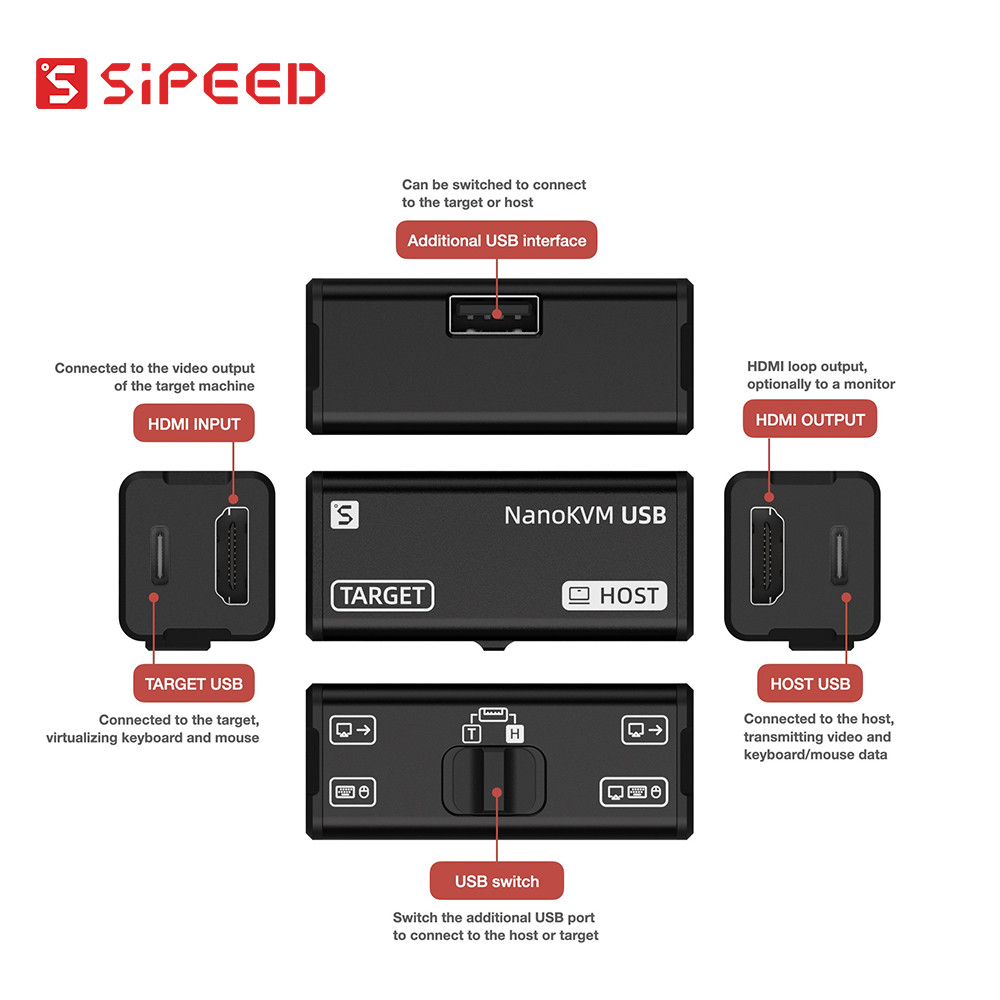 Sipeed NanoKVM-USB USB3.0 KVM Over IP HDMI Capture Card Virtual Keyboard Mouse Web Control HDMI Loop Out USB Switch