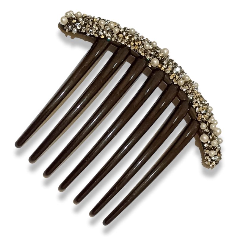 Sirkam Sanggul 10.5cm Aksesoris Rambut Permata Mutiara 7 Taring Diamond Pearl Hair Comb