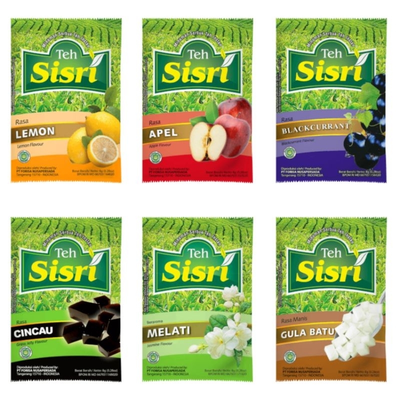 Sisri teh instant sachet 8 gram Lemon Apel Blackcurrant Cincau Gula Tebu Melati terlaris