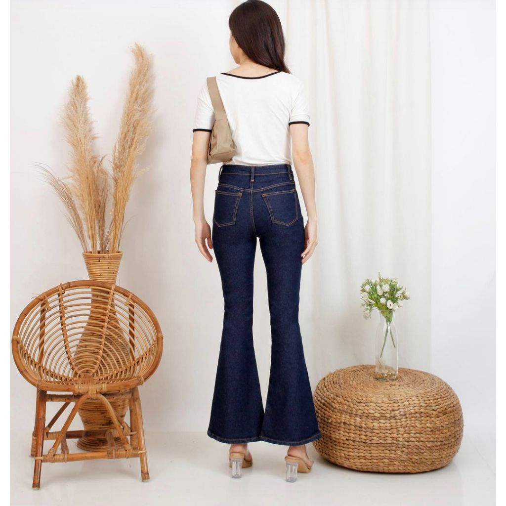 Size 27-34 HW Cutbray dark navy garment highwaist jeans fit & flare garment black navy blue jeans celana cutbray lebar bawah