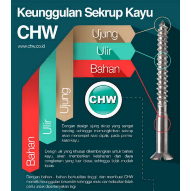 Size 3x12 Sekrup Kayu Plus CHW
