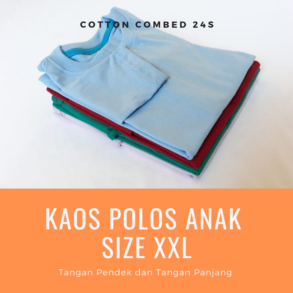 Size XXL Kaos Polos Anak Lengan Pendek Kaos Polos Anak Lengan Panjang