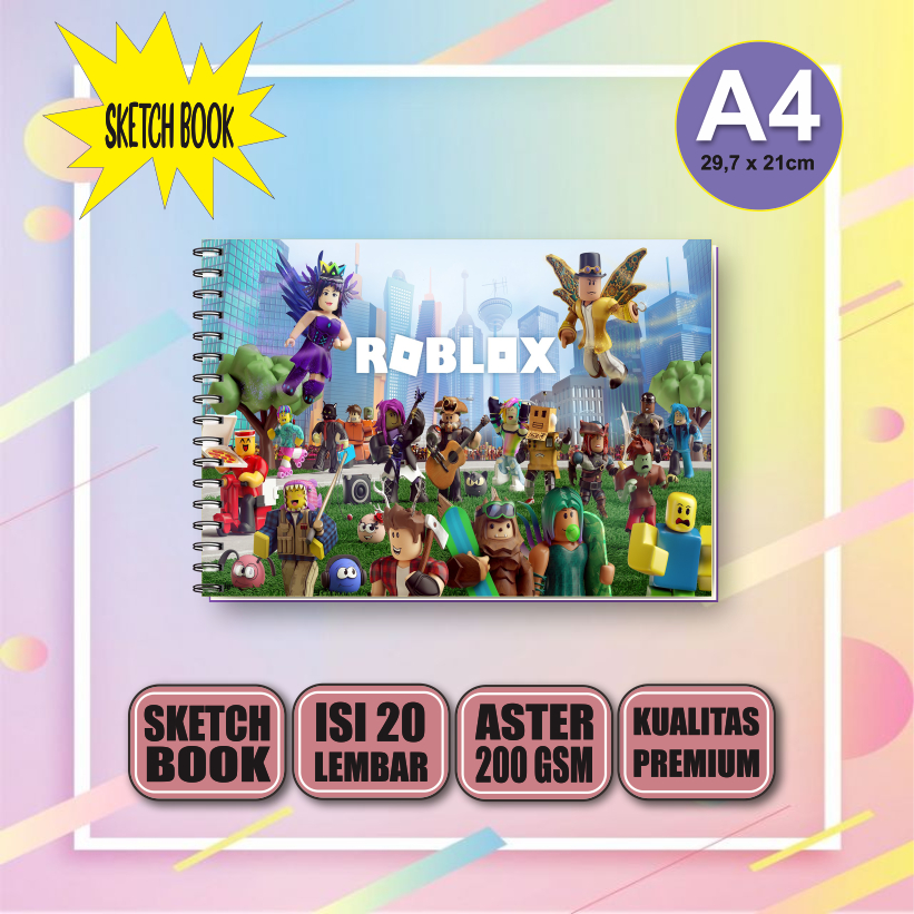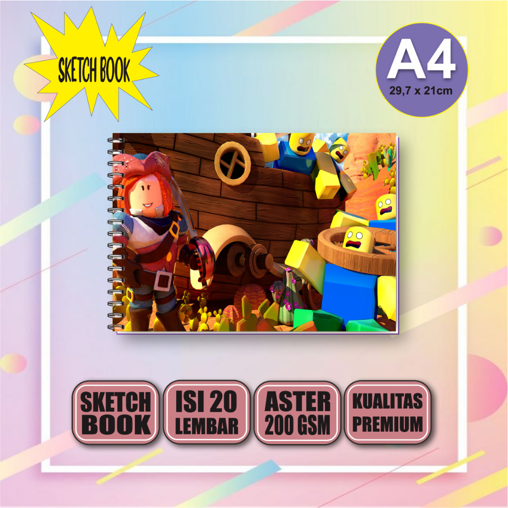 Sketchbook Roblox A4, Buku Gambar Vertikal Jilid Spiral 20 Lembar/40 Halaman