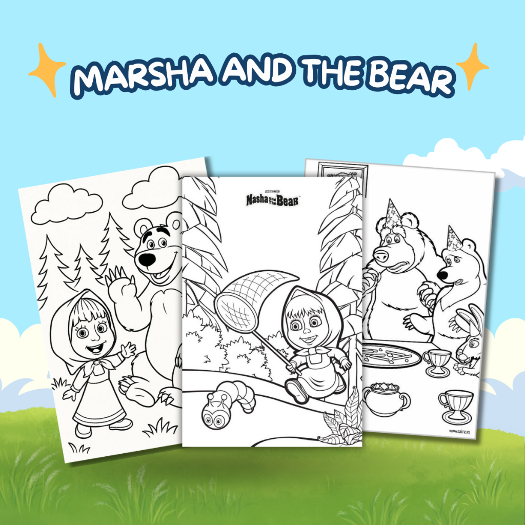 Sketsa Gambar Mewarnai Untuk Anak Paud dan TK Tema Marsha And The Bear (Random)