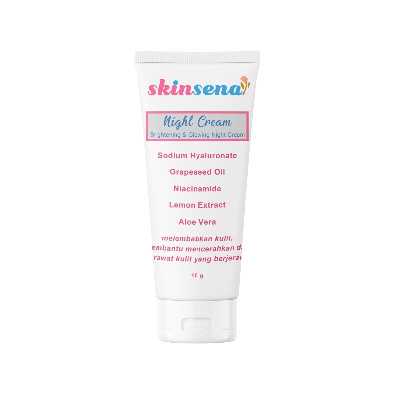 Skinsena Glowing Night Cream 10g BPOM Untuk Mencerahkan, Melembabkan dengan Niacinamide, Aloe Vera, Grapeseed Oil, Sodium Hyaluronate