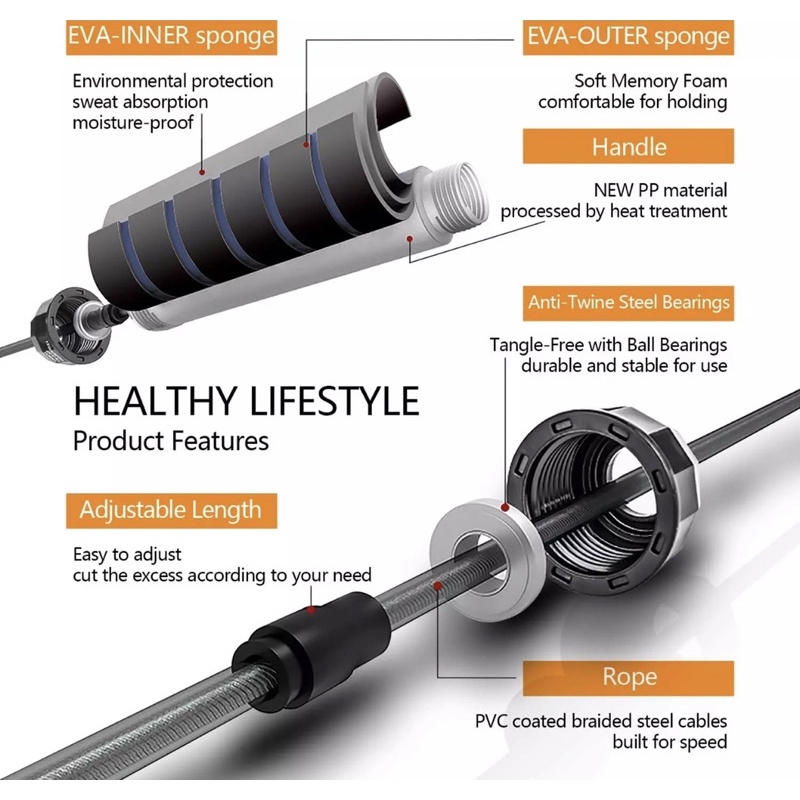 Skipping Skiping Lompat Tali Loncat Alat Olahraga Speed Jump Rope 3M for Workout Fitness Weigh Loss - SKU 5.013.0089 - #1100-36